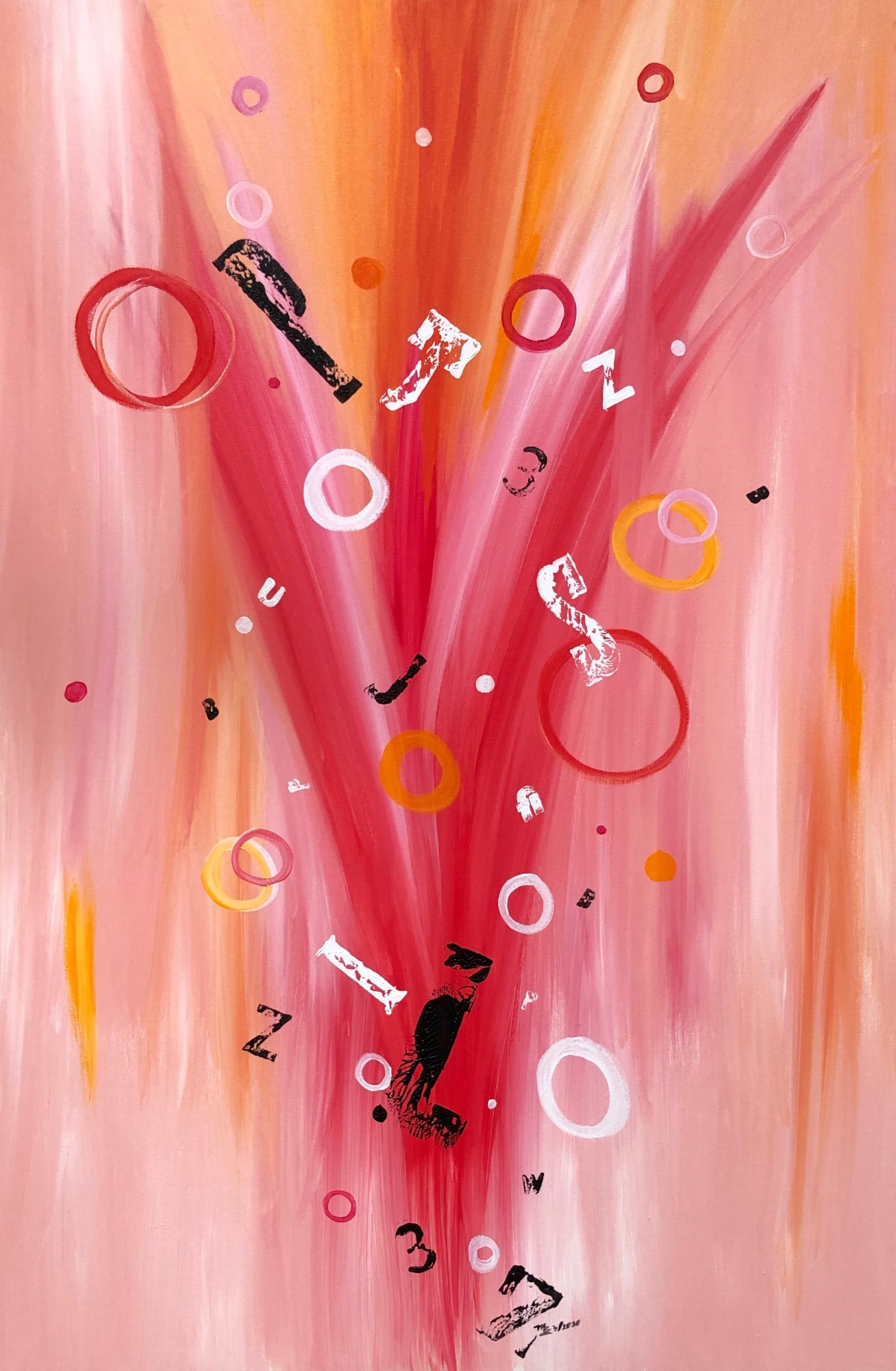 Acrylic painting on canvas, created with traditional painting techniques and the use of vintage wood and metal type.