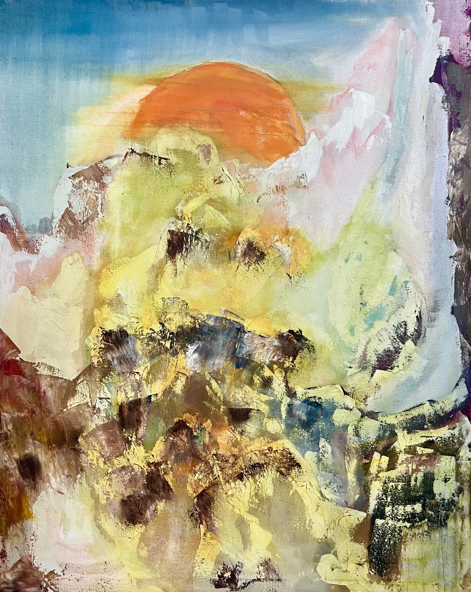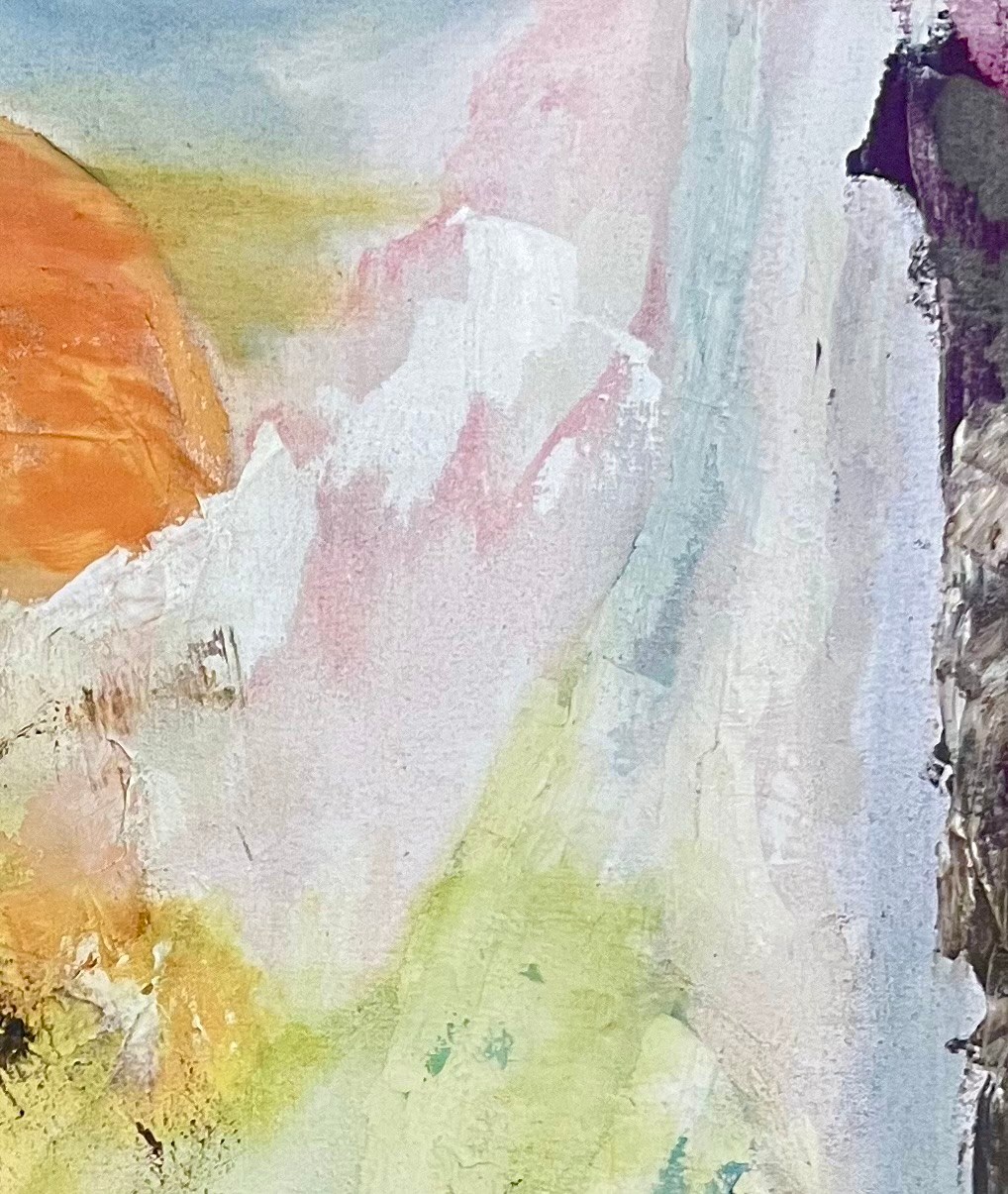 Sunrise over mountains, textured, evocative of snow covered alps in a bright, winter/spring landscape.