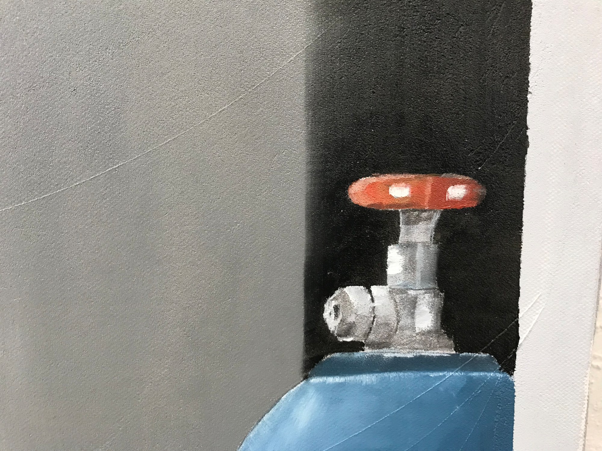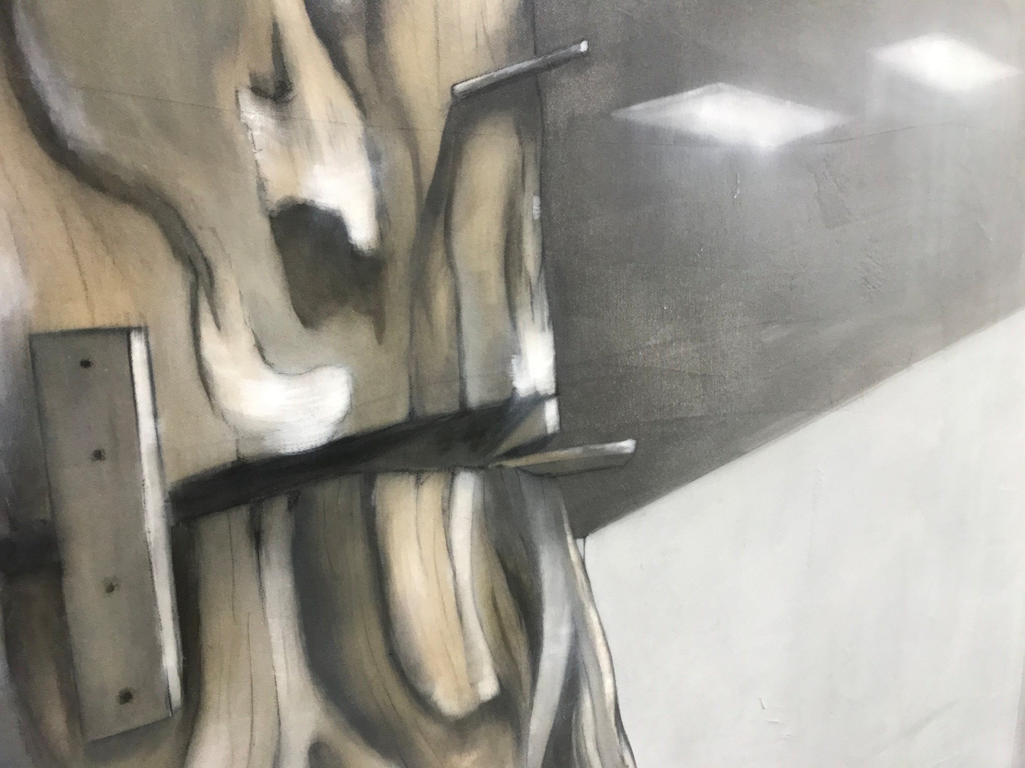 This Painting is based on the installation "Atmosphere," born from a live performance in 2003, stands as a haunting tribute to the fragility of our natural world. Massive trees, once towering sentinels of the rainforest, have been meticulously cut into pieces and reassembled, a poignant reminder of the delicate balance between nature and human intervention. At the heart of this striking composition lies a cluster of oxygen tanks, symbolically tethered to the very essence of life that these trees once provided. Set against the backdrop of the Museum of Modern Art, the project faced significant scrutiny and resistance, particularly in retrieving materials from the pristine beaches of the Peninsula de Osa. Yet, with the invaluable support of the government, permission was granted to repurpose these culturally significant elements, celebrating a heritage deeply intertwined with nature. In Costa Rica, stringent laws guard against the exploitation of its lush landscapes, preserving the integrity of the environment. As I gaze down upon the remaining fragments of this once-vibrant rainforest, a wave of emotion washes over me—a bittersweet acknowledgment of what has been lost and a fervent hope for what remains.