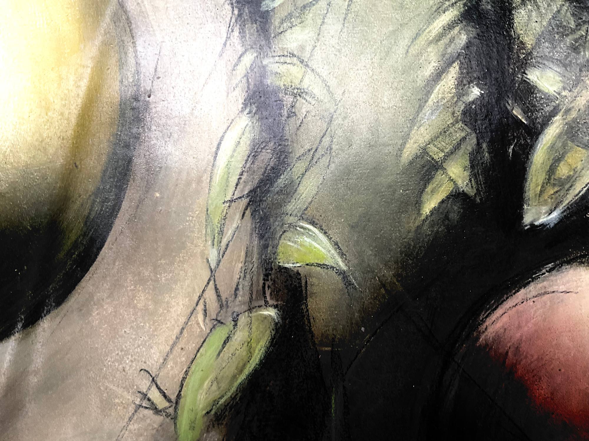 these canvases are studies for larger paintings. they reflect technical experimentation as well as establishing content and language for the final outcomes. They are very unique showing the artistic work progress and intent