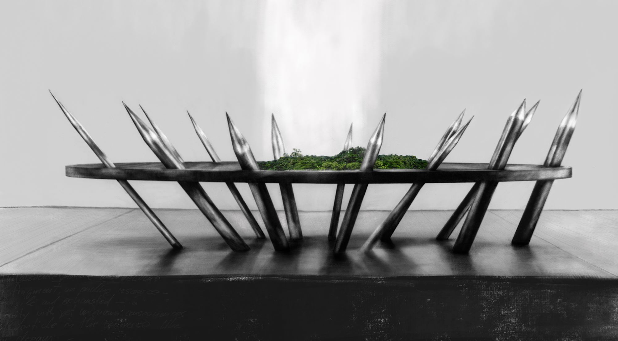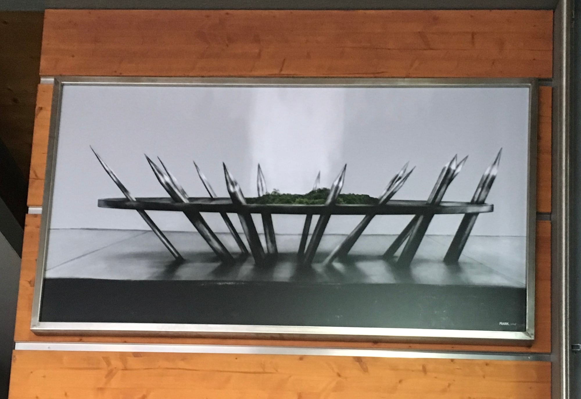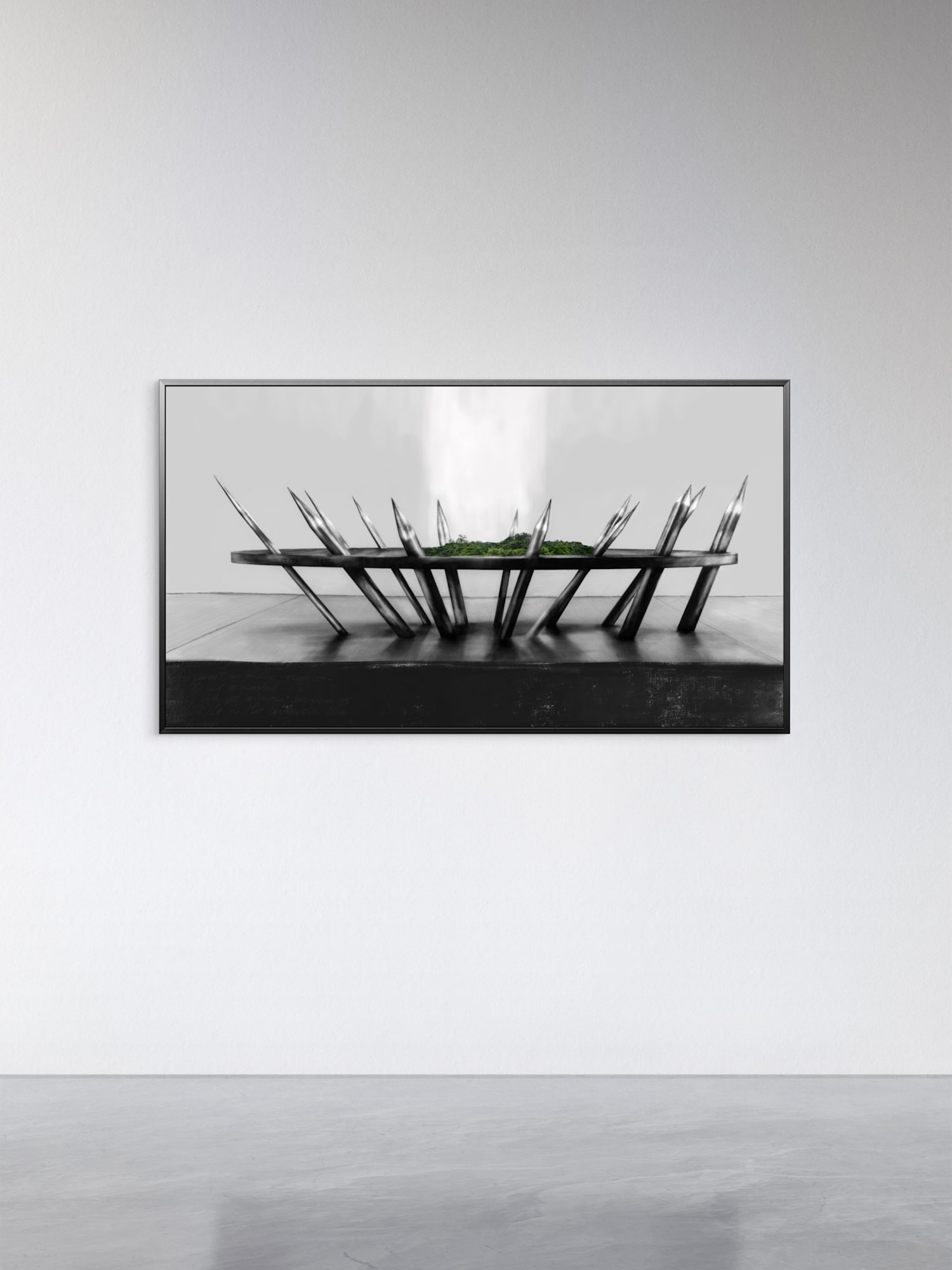 Forged from steel in 1993, this large sculpture bearing the same title, stands as a striking testament to the fusion of disparate realms—industrial and natural.