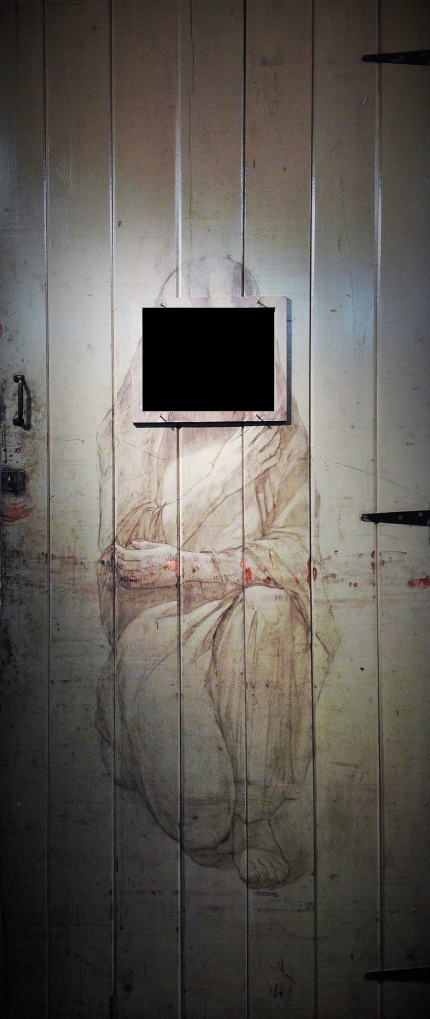 In route to the National College of Art in Design, I came upon an old door protruding from a construction site dumpster. Often incorporating found objects in my work, I rescued the door from its fate, bringing it to my studio space at the college. The age of the door was indiscernible. Made of simple planks, it was encrusted with years’ worth of paint and varnish - attached to it were two crude and rusted iron hinges. Judging from appearances, it seemed ancient, as if the entire history of Ireland had accumulated upon its dark and richly patinated surface.