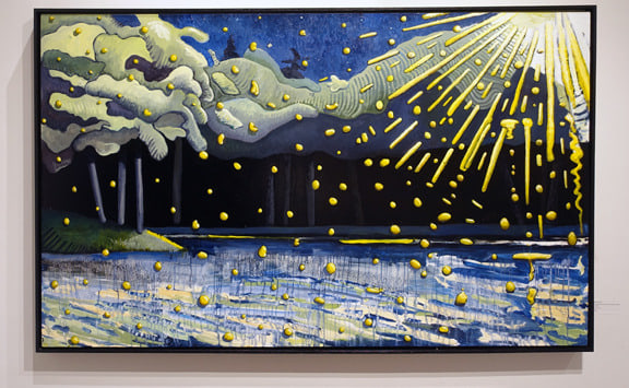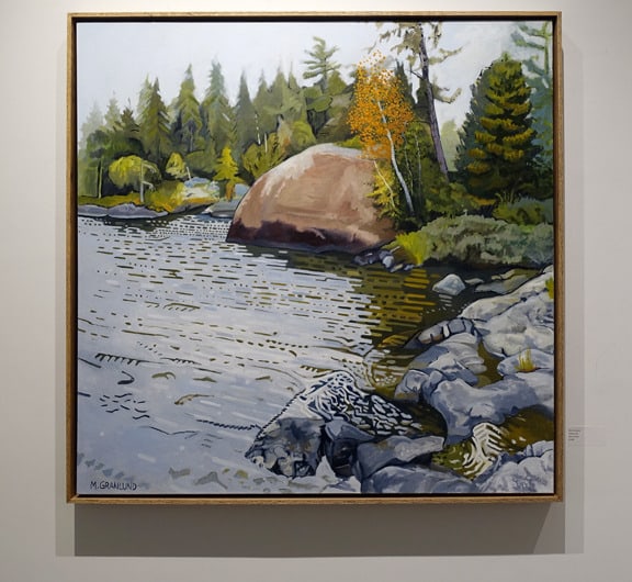 His influences include Thomas Hart Benton, Lois Dodd, James Winn, Philip Guston and Milton Avery. Granlund's landscapes are created in response to the Northern Minnesota landscape. Granlund's regular visits to the Minnesota/Canada border, to explore the landscape of his father's childhood, have forged an attentiveness to its unique combination of water, rocks, trees and sky. In his paintings he is recognizing the energy patterns that are kindred between body and rock, thought and sky, feelings and water, all in the presence of witnessing spirits – the trees.