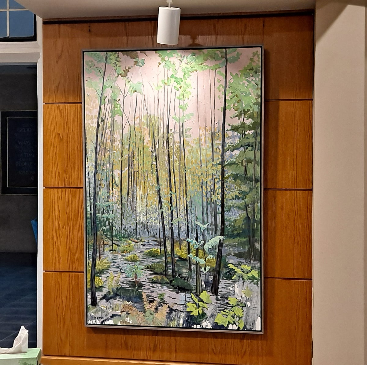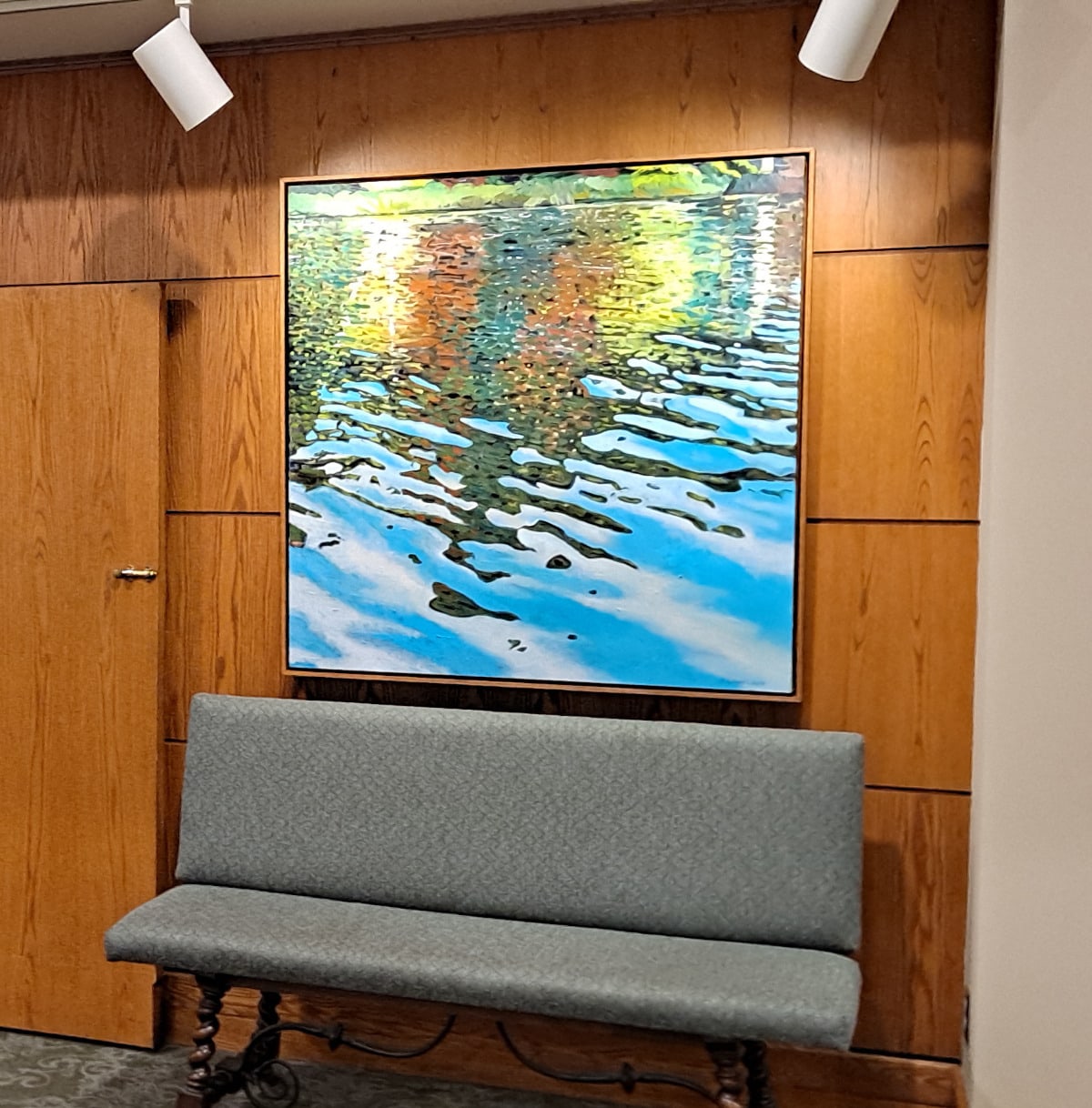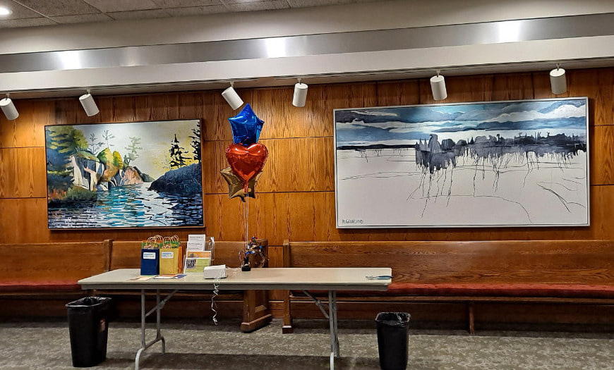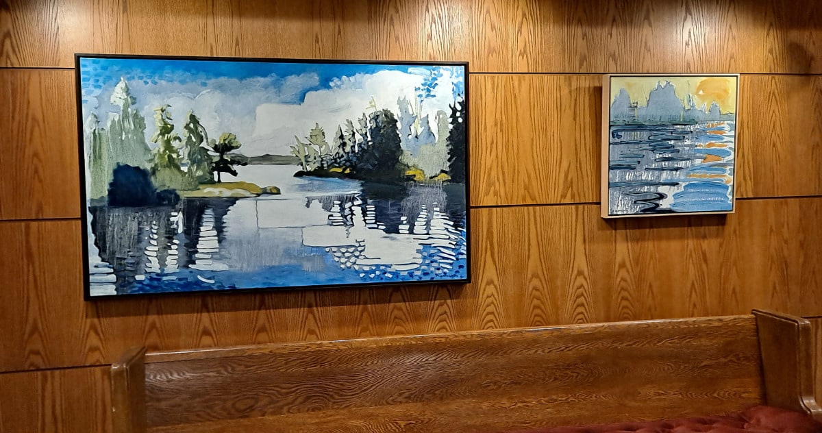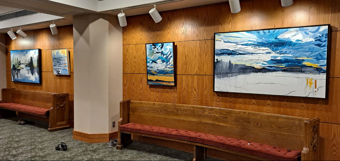 The beautiful Carlson Fellowship Hall is the setting for an exhibit including my large-scale landscapes.