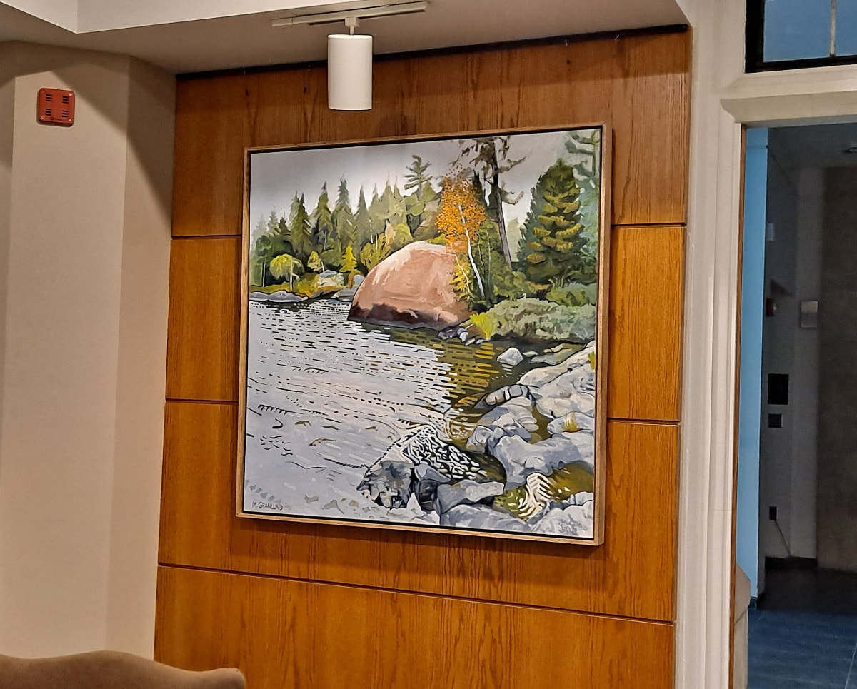 Granlund's regular visits to the Minnesota/Canada border, to explore the landscape of his father's childhood, have forged an attentiveness to its unique combination of water, rocks, trees and sky. In his paintings he is recognizing the energy patterns that are kindred between body and rock, thought and sky, feelings and water, all in the presence of a witnessing spirit.