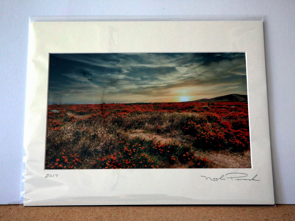 The sun sets on the Antelope Valley poppy fields that bloom every spring in Southern California.