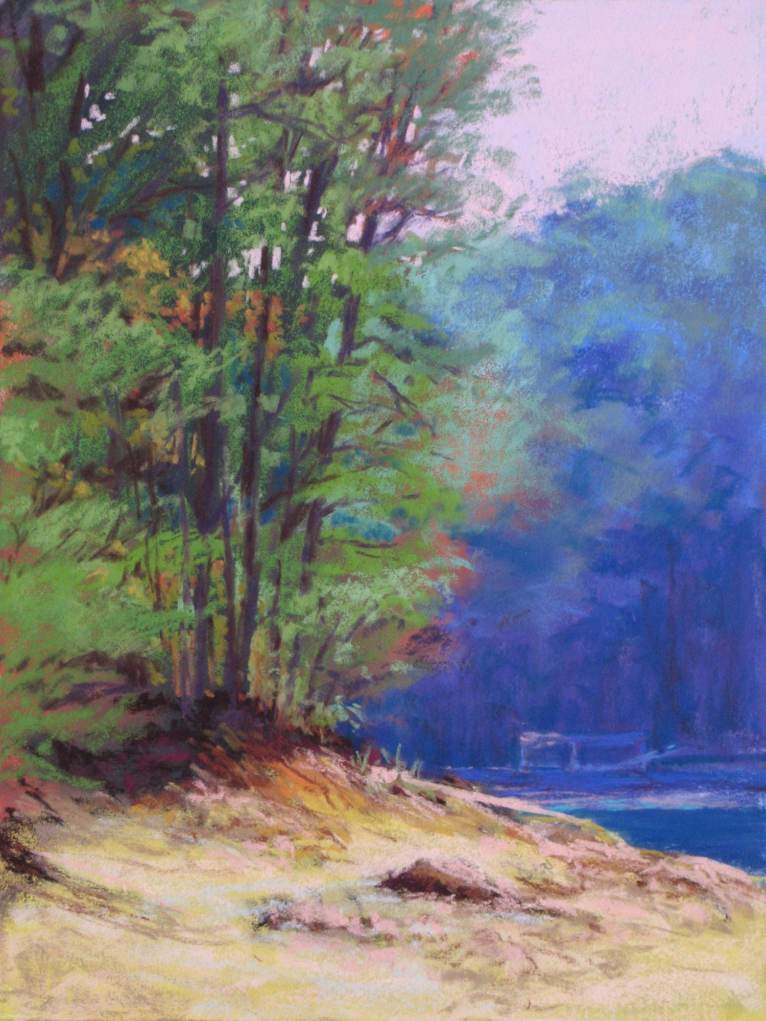 This pastel painting was done from a photograph I took at Lake Blue Ridge, near Blue Ridge, GA. I have painted plein air along the lake many times and feel confident to use my photographs to create my "vision" of the subject!