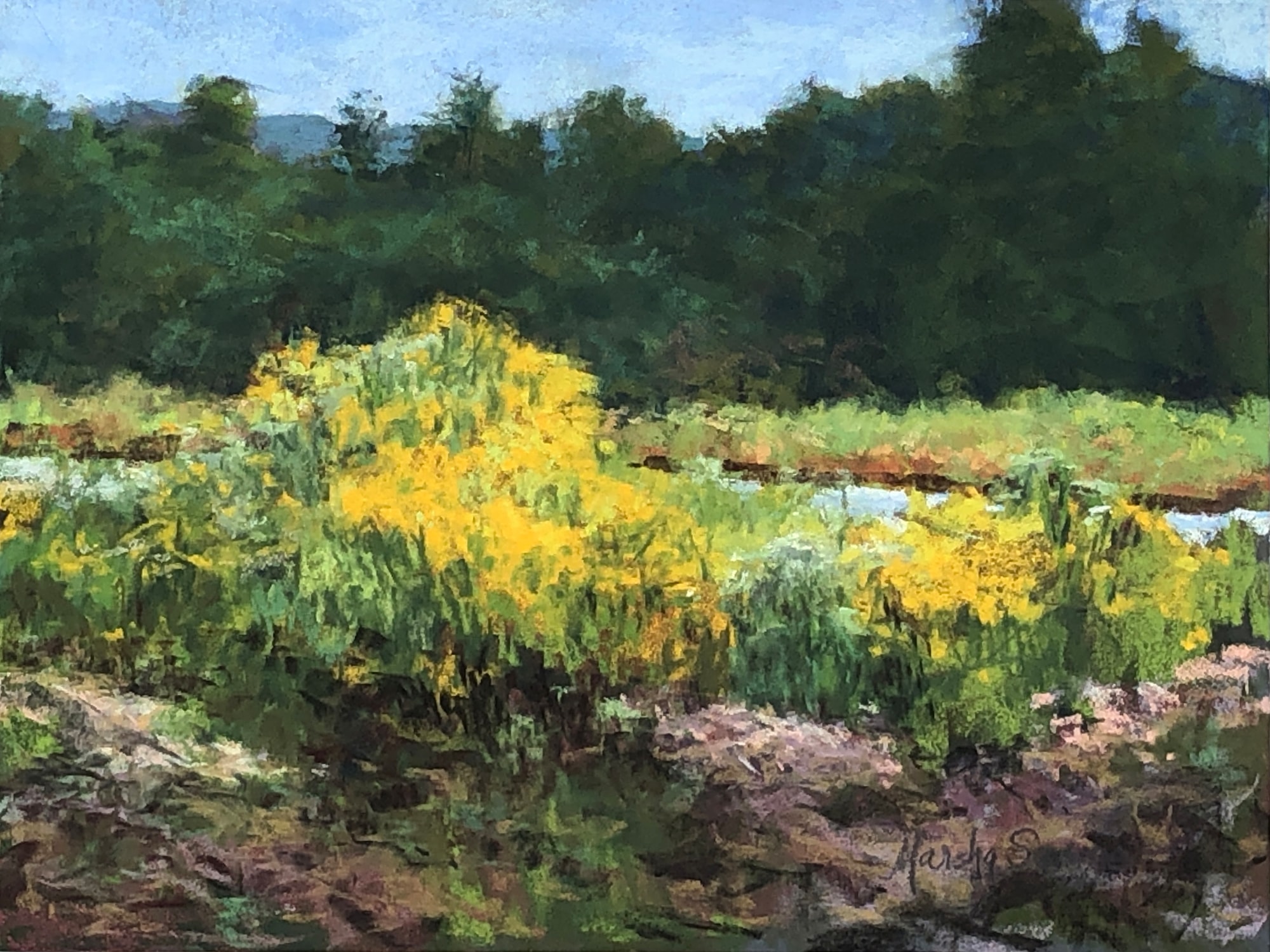 I did this plein air painting during the Blue Ridge Mountains Arts Association plein air event in September. We were at the Old Toccoa Farm Golf Resort up on one of the small mountains. We had beautiful views, and I just happened on this one while parking near the clubhouse! The minute I saw the mass of yellow flowers I knew what I would paint. I won an Honorable Mention award ... only Best in Show and the Honorable Mention were given!