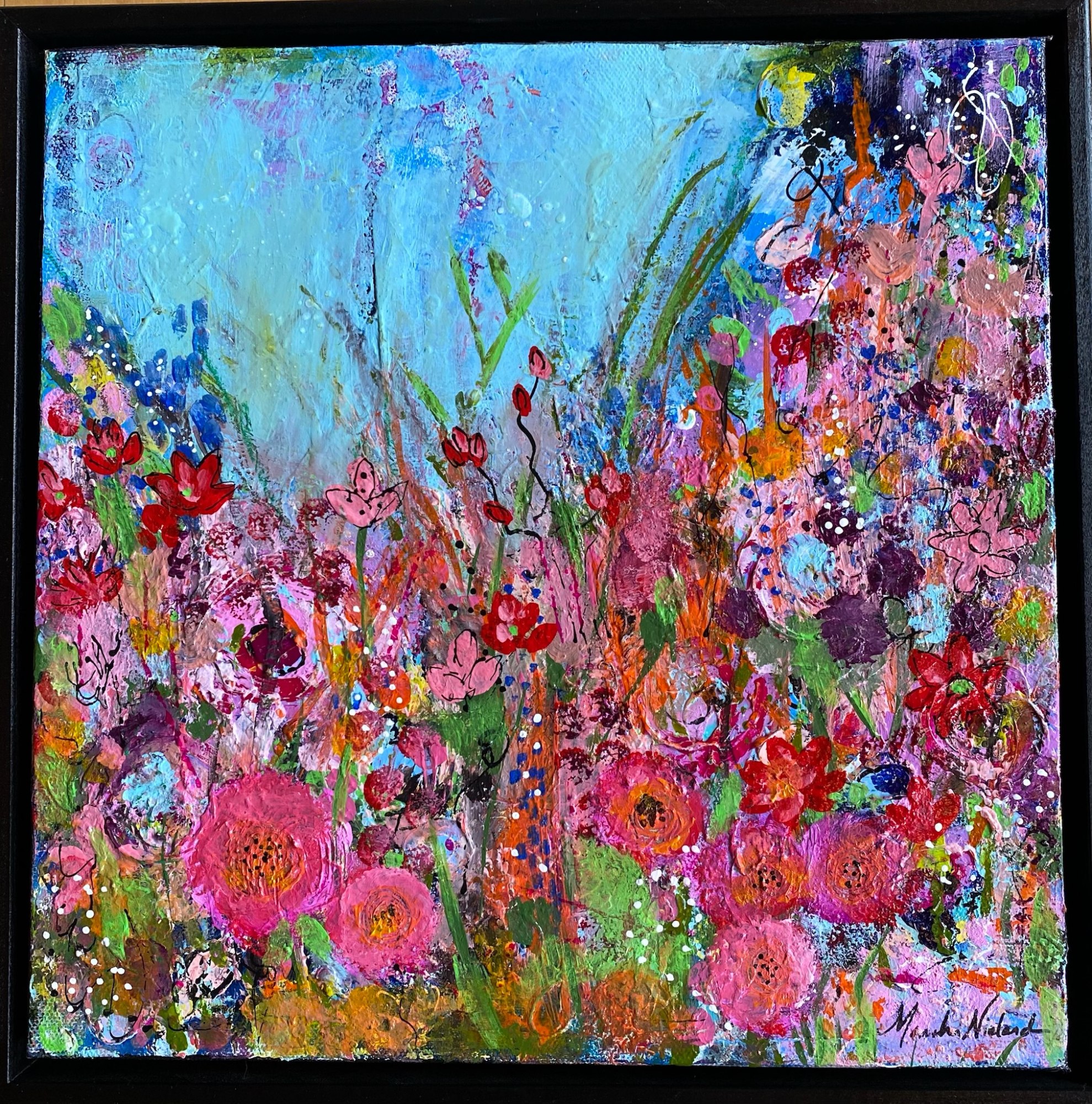 Wildflower Field 1 by Marsha Nieland  Image: Acrylic on 12x12 canvas with black floating frame.