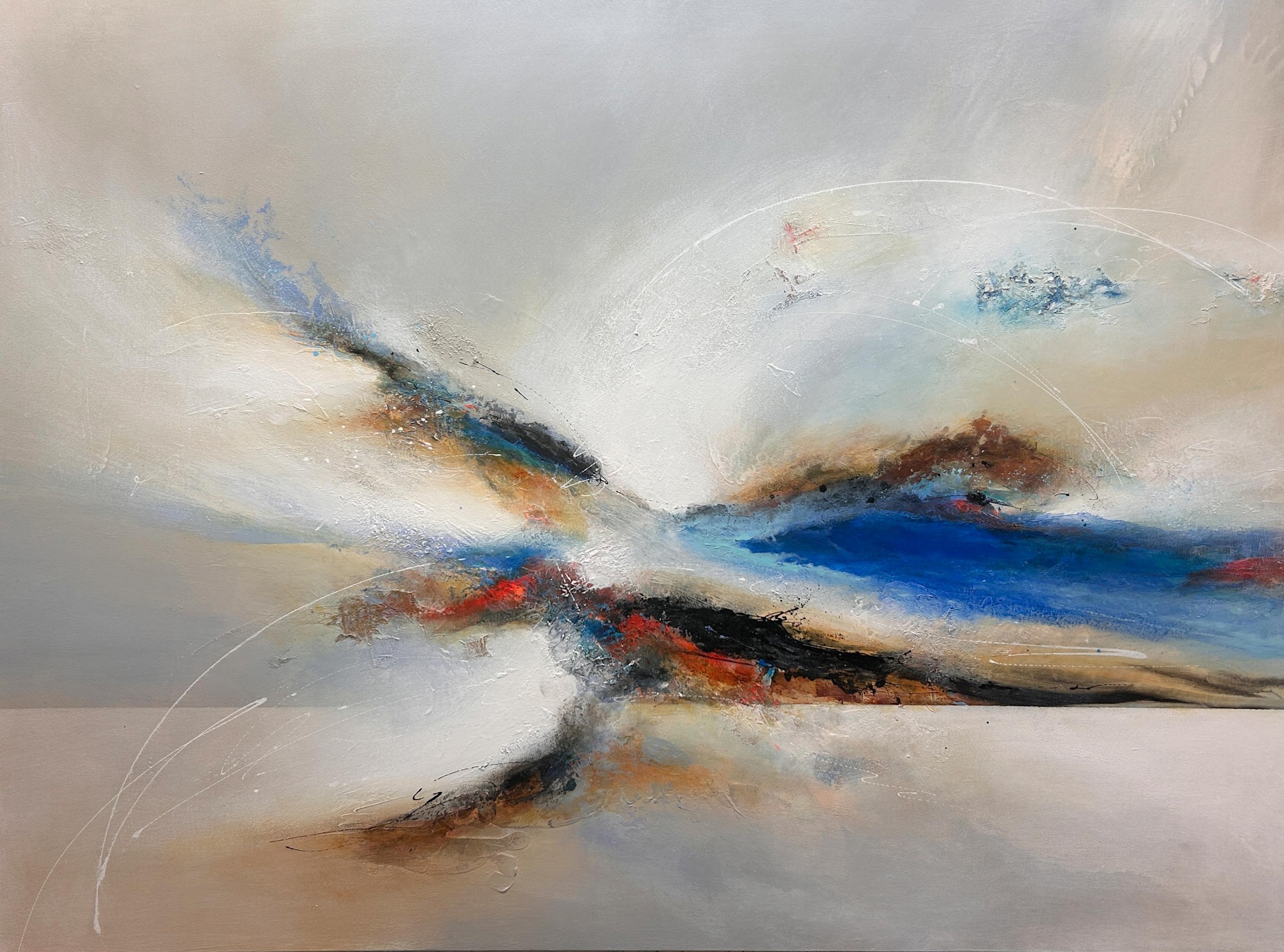 Abstract Landscape , The stream breaking through the winter freeze. Acrylic on Wood Pane