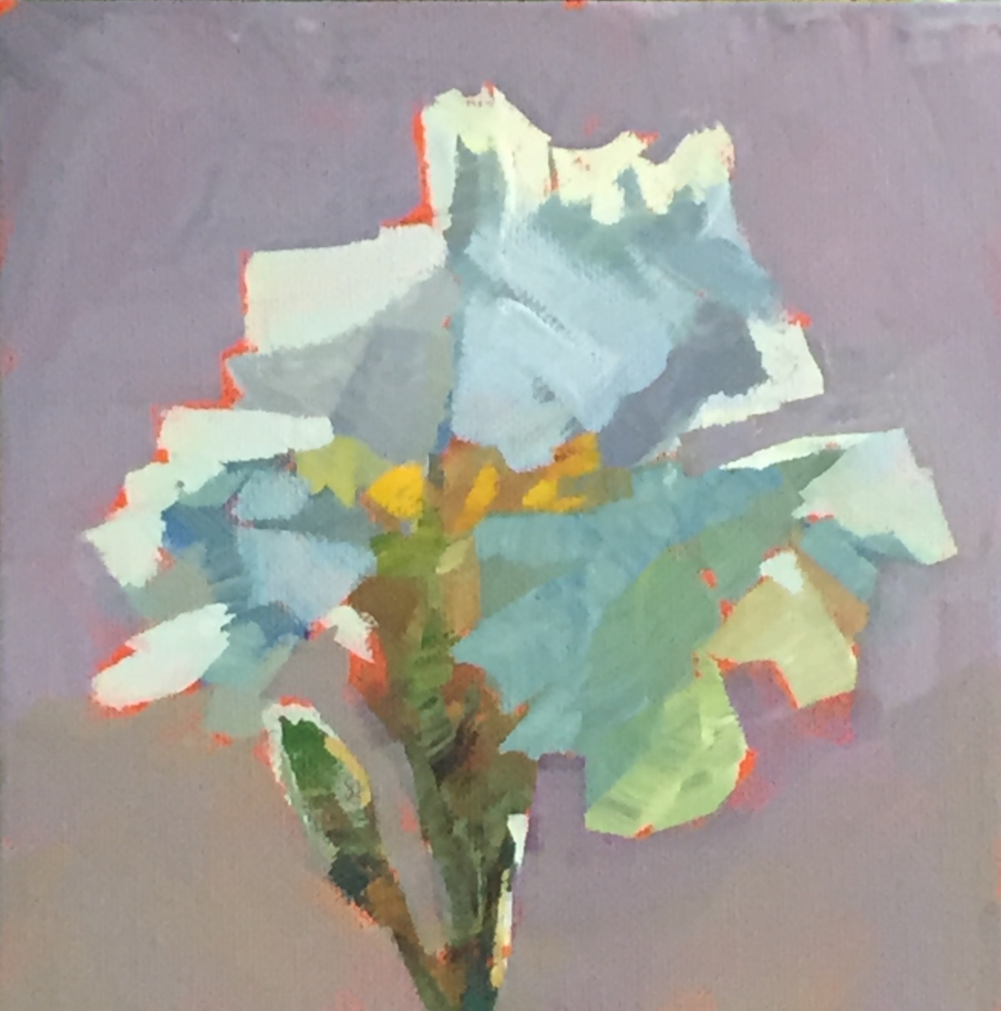 A myriad of colors in an elegant white iris. Framed in a gold museum frame.