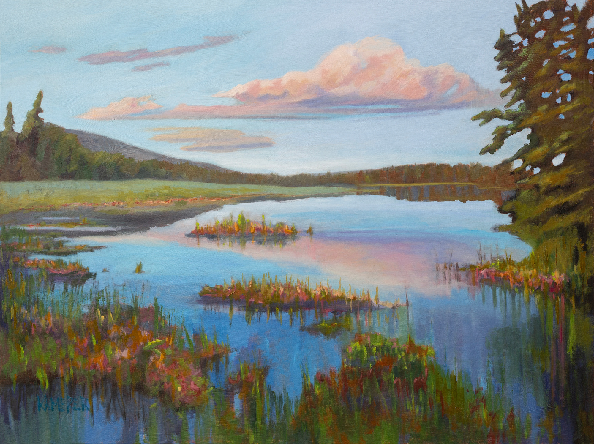 This painting captures that fleeting moment when the shoreline feels alive — not just with water and light, but with color, bloom, and breath. Inspired by the delicate riot of wildflowers along the water’s edge, I wanted the brushstrokes to feel both untamed and intentional, like nature arranging itself.