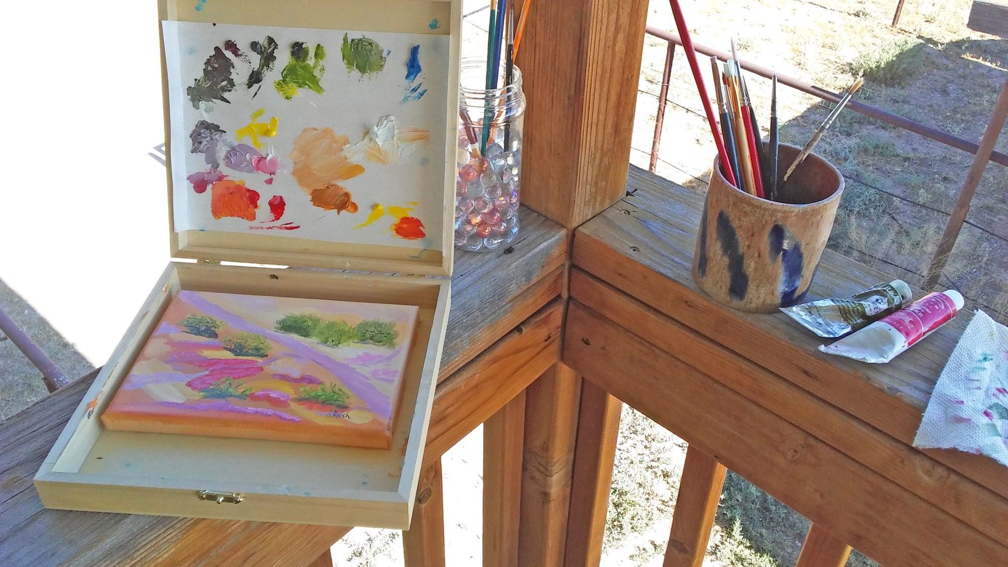 Looking out my deck, I saw the scene I wanted to paint. A favorite walking path and the driveway leading to the road. The trees swayed as I painted.