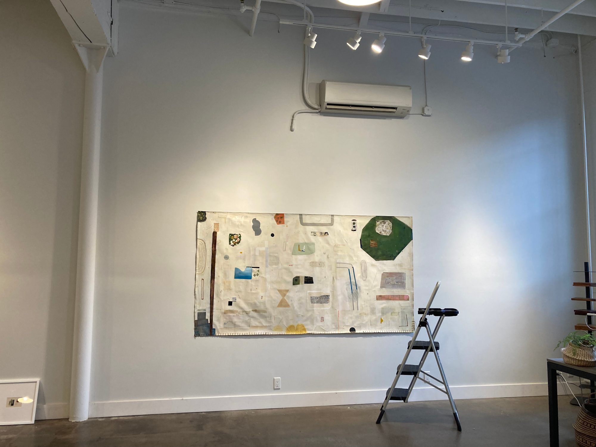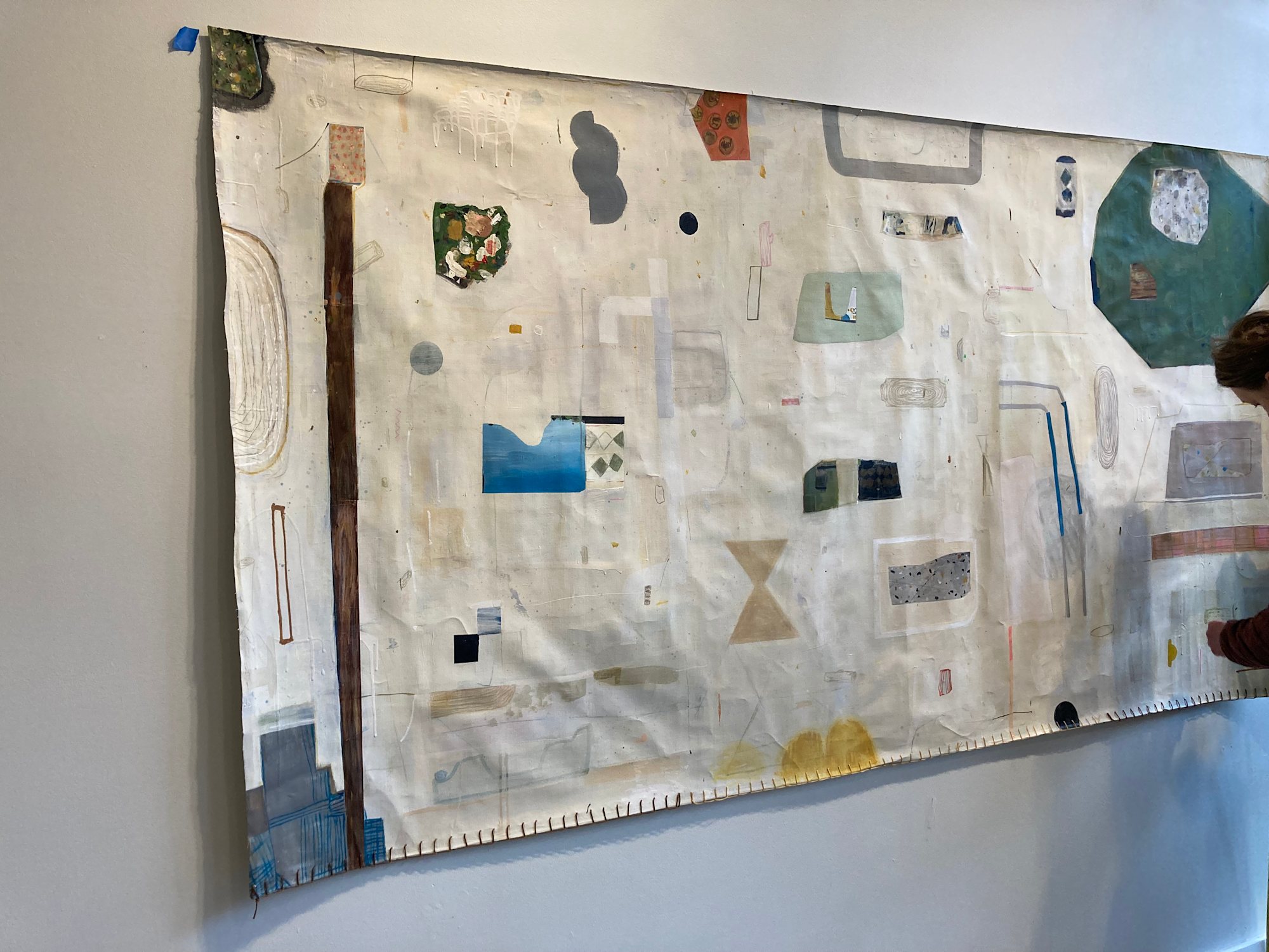 • A Collection + Recollection of a Petrified Forest (225–207 million years old) 52.25 x 98” Mixed media on un-stretched canvas