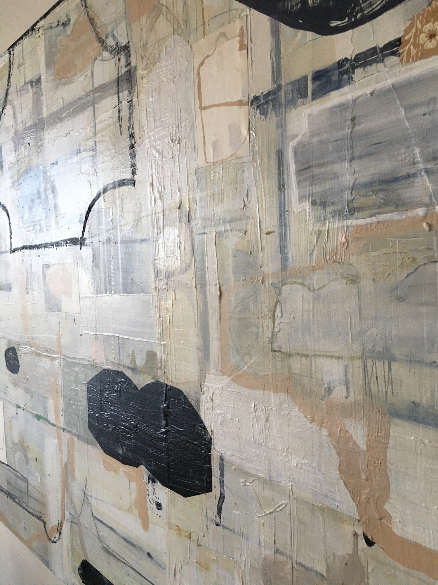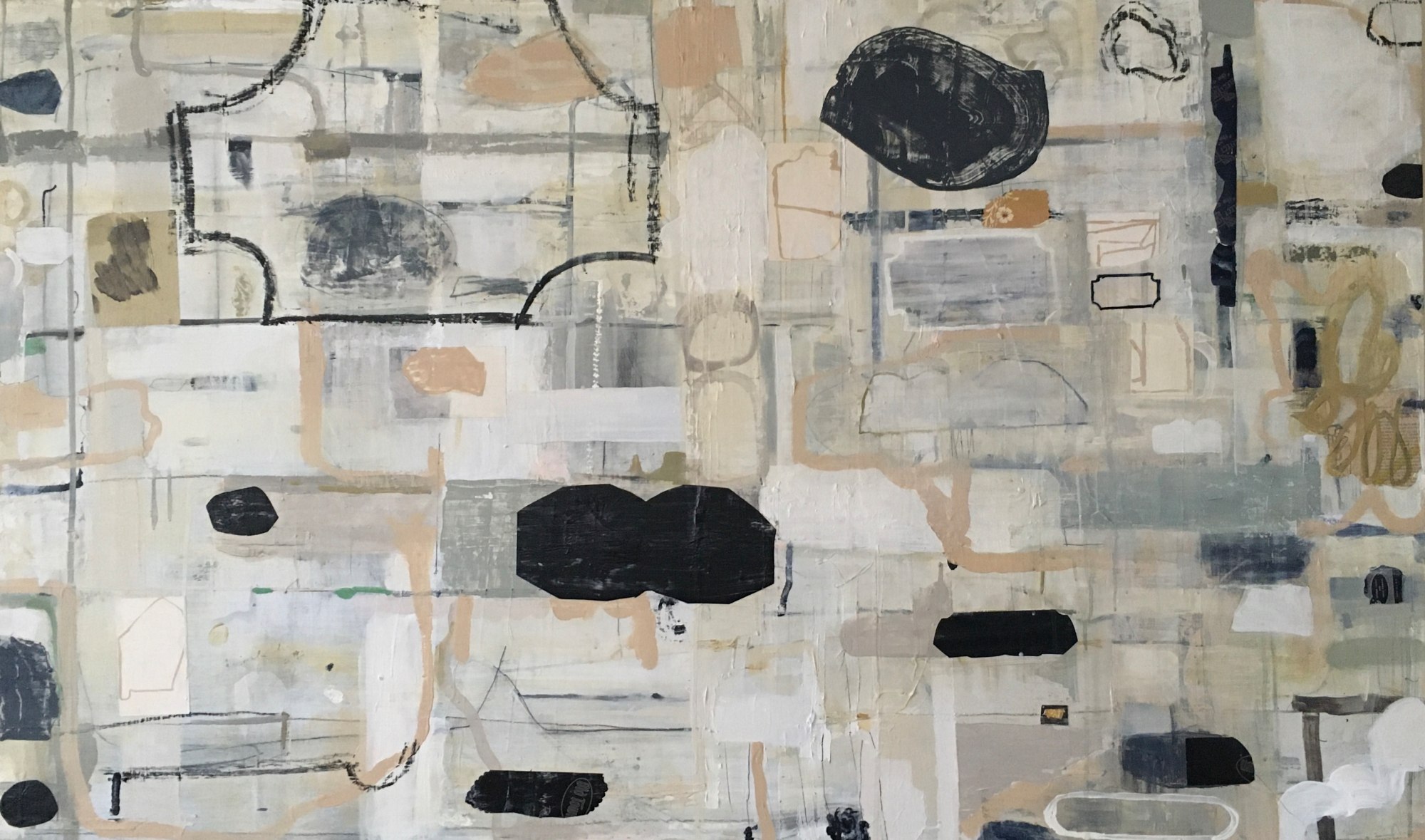 Painting with collage elements on birch ply with grid backing. Unframed edges “float” off wall. Framing options are available.
