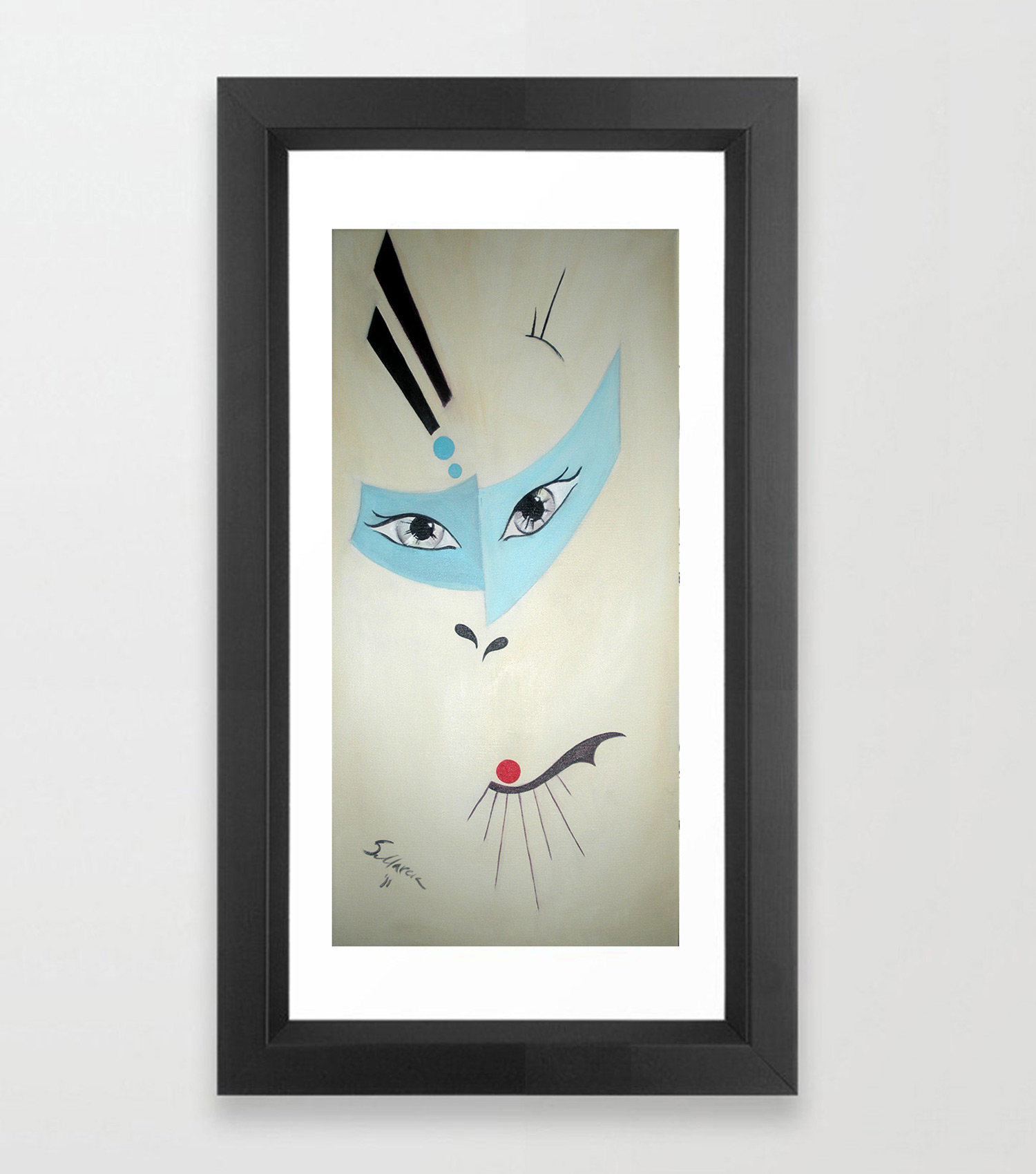 Mask confronts the viewer with what’s seen and what isn’t. A piercing gaze peers out from an icy blue band, hinting at protection, performance, or emotional armor. The stark red lips float independently, bold yet silent, suggesting withheld words or hidden desire. Every line in the composition feels intentional, as if identity has been reduced to symbols for the sake of survival or self-control. There’s elegance in the restraint, but also tension. This piece invites the viewer to sit in that discomfort and wonder how often do we show only what’s safe, and what lies beneath the mask we wear?