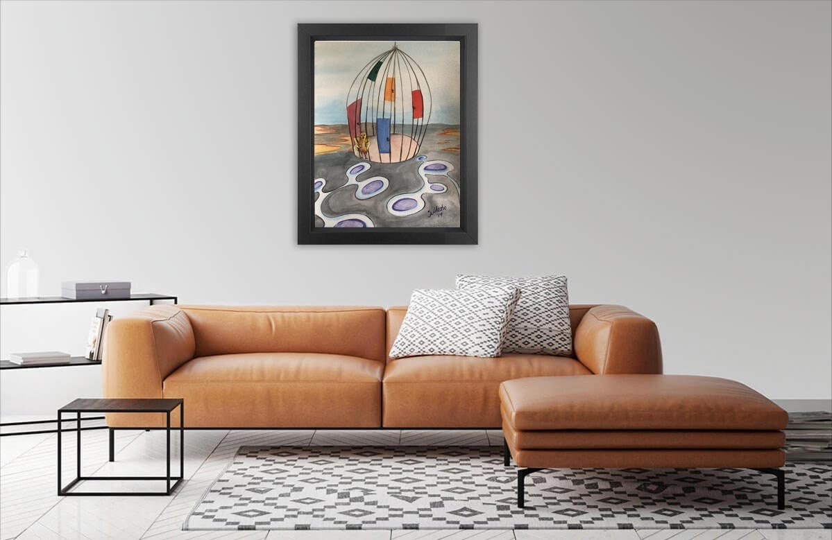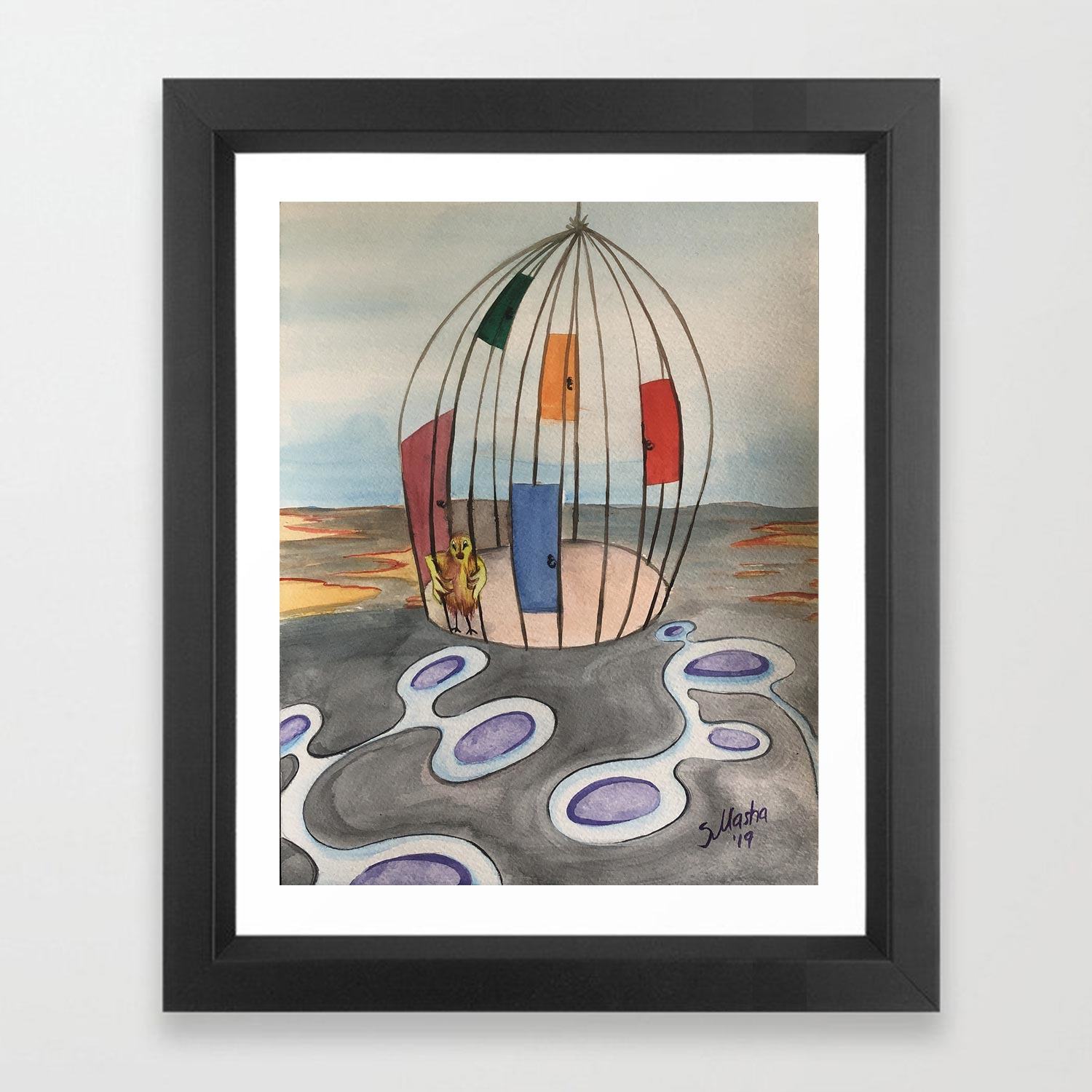 In Trapped, a lone bird stands within a spherical cage whose bars bend reality and memory. Color panels swing open yet remain just out of reach as symbols of fleeting freedom and the subconscious doors we yearn to unlock. Beneath the cage, fluid pools of thought spread across a barren landscape, reminding us that our deepest barriers are often self-imposed. This Surreabstract vision by Masha invites viewers to confront the limits of perception and ignite the quest for true liberation.