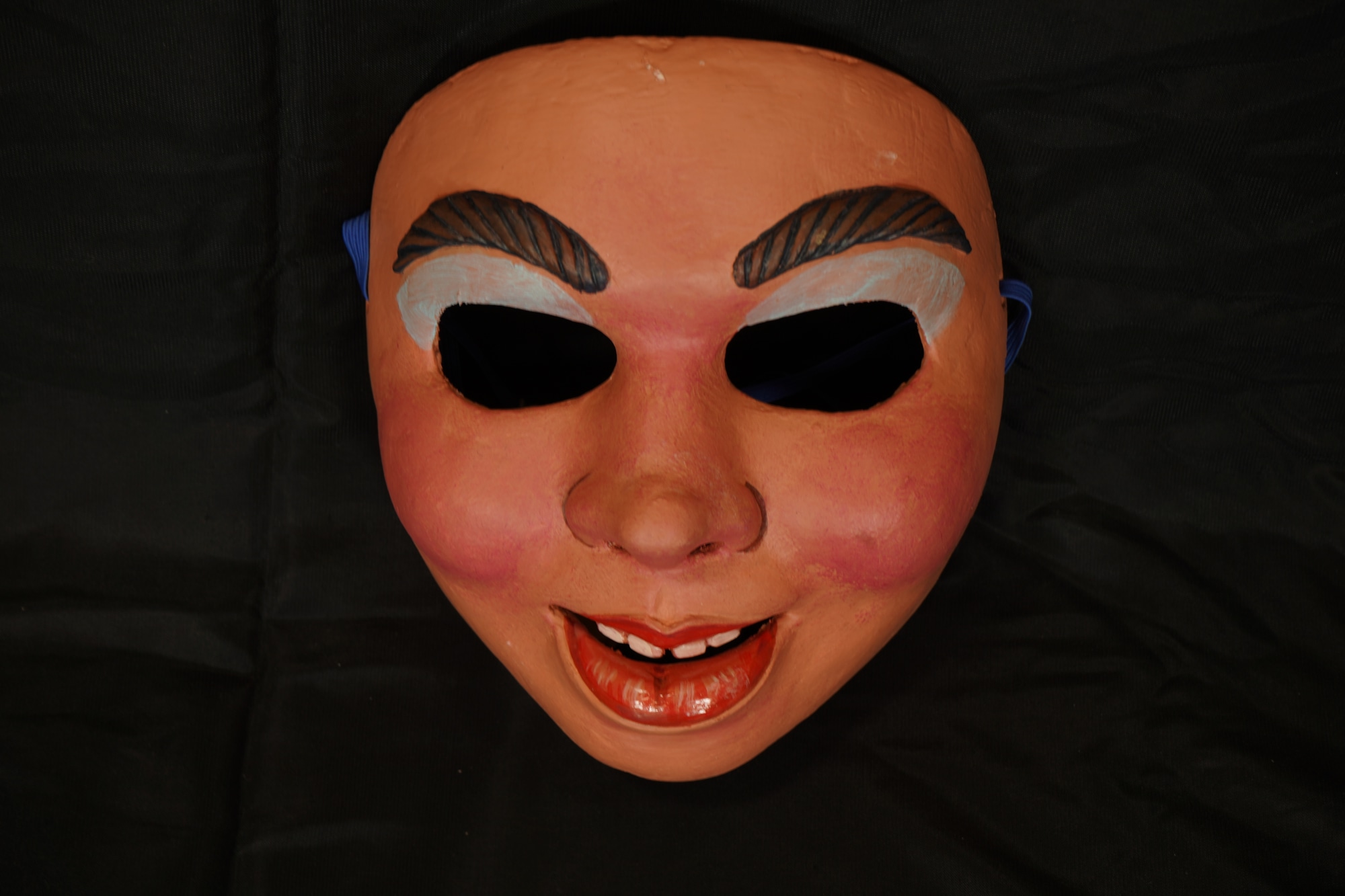 Sonrisa Series created for Ballet Folklorico Quetzalli and debuted at Cultural Coalition's 2024 Mask Alive Festival. Artist, Zarco Guerrero created these masks to add more variety at festivals. After realizing the large number of aggressive-faced masks he produced, he decided it was time to lighten the air with two new series of masks; the 2024 Sonrisa & Funny Face Series. The smiley face has been used as a motif in Mexico since ancient times, especially in masks and sculptures. By creating the new mask series, the artist payed tribute to traditional themes used in Mexican art and provided a special element of humor and cheerfulness at the festival.