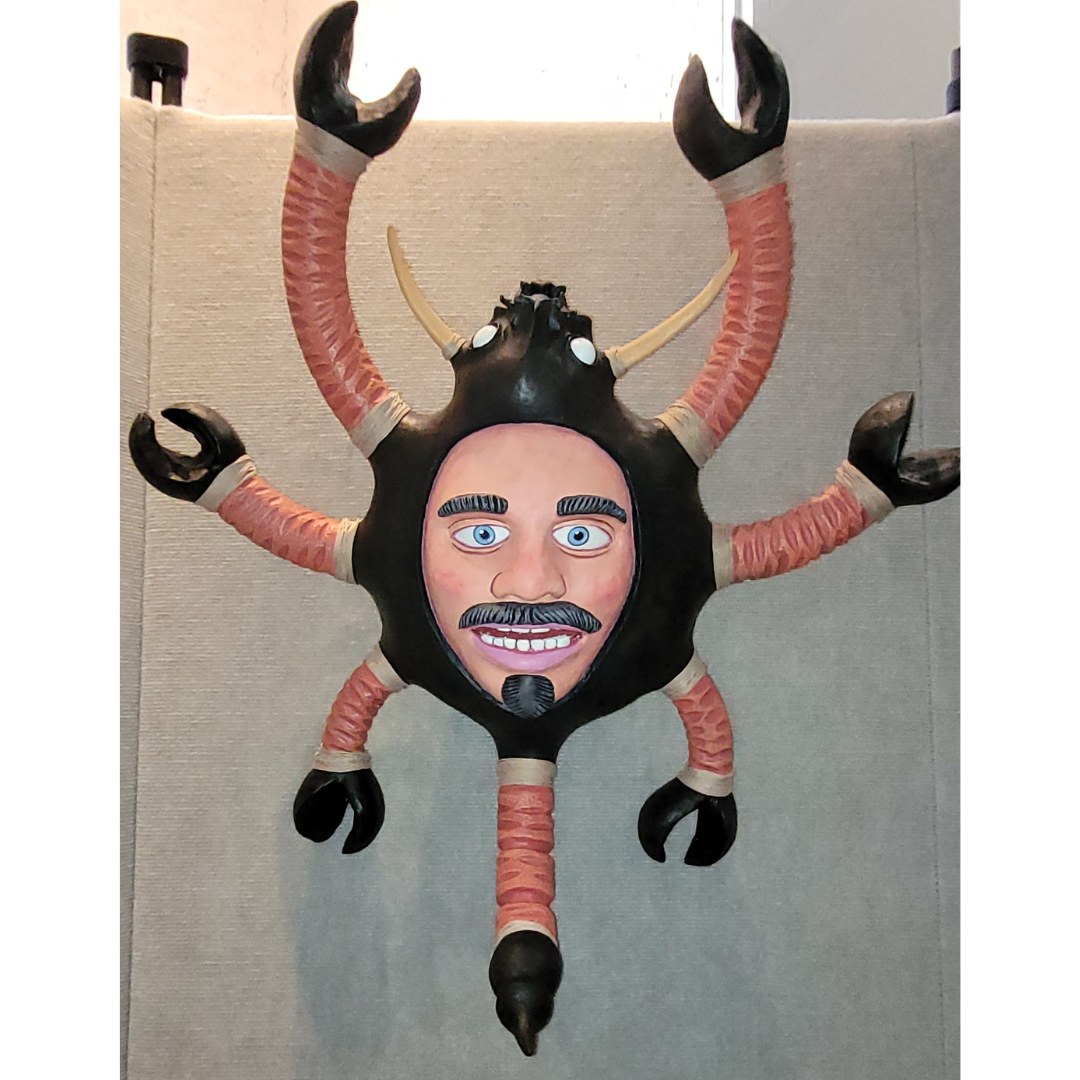 Materials: styrofoam, plaster bandage, and paper clay for the body. Repurposed artists' first Calaka mask with additional features for the face in middle. Also made with plaster bandage and paper clay.