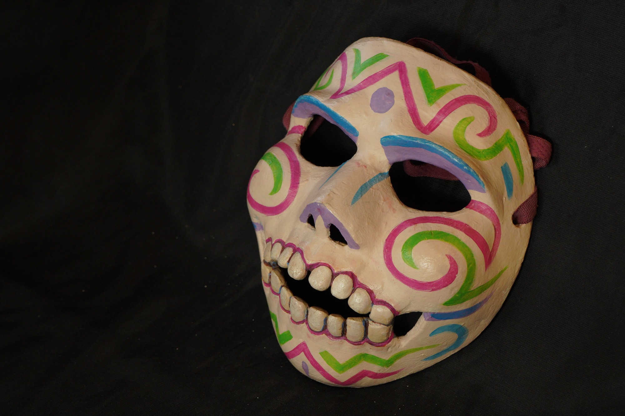 Part of the Ollin Yoliztli Calaca Series. Masks created over the duration of 3-4 years. While creating this collection, the artist developed and perfected his own style of painting for the calaca masks.