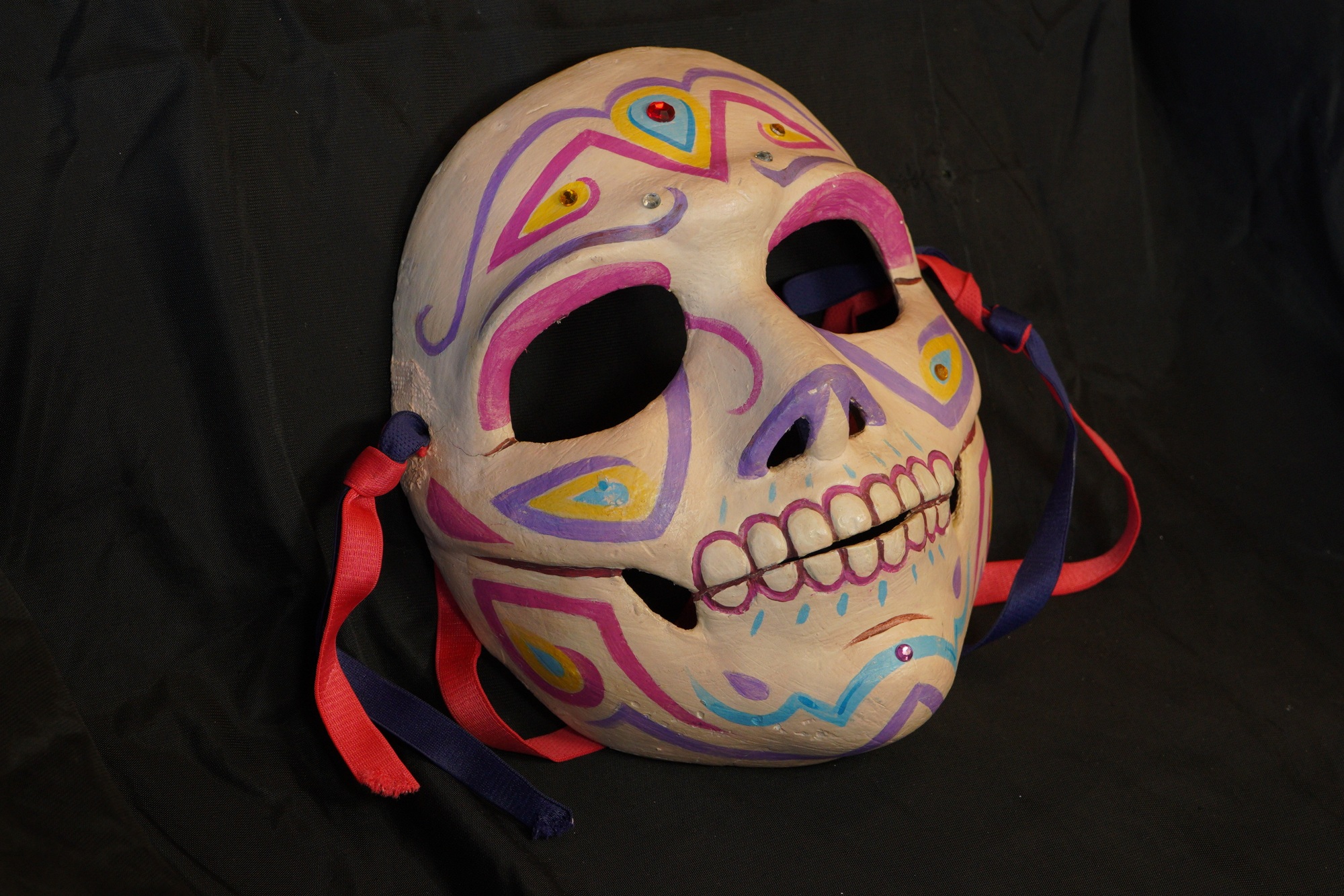 Part of the Ollin Yoliztli Calaca Series. Masks created over the duration of 3-4 years. While creating this collection, the artist developed and perfected his own style of painting for the calaca masks.