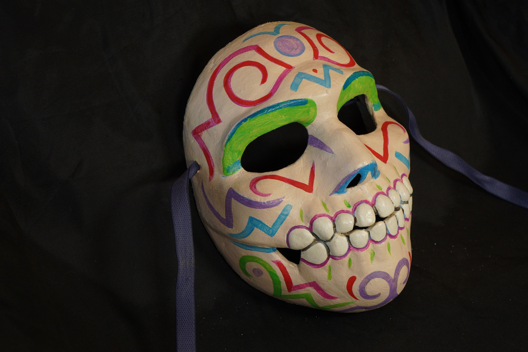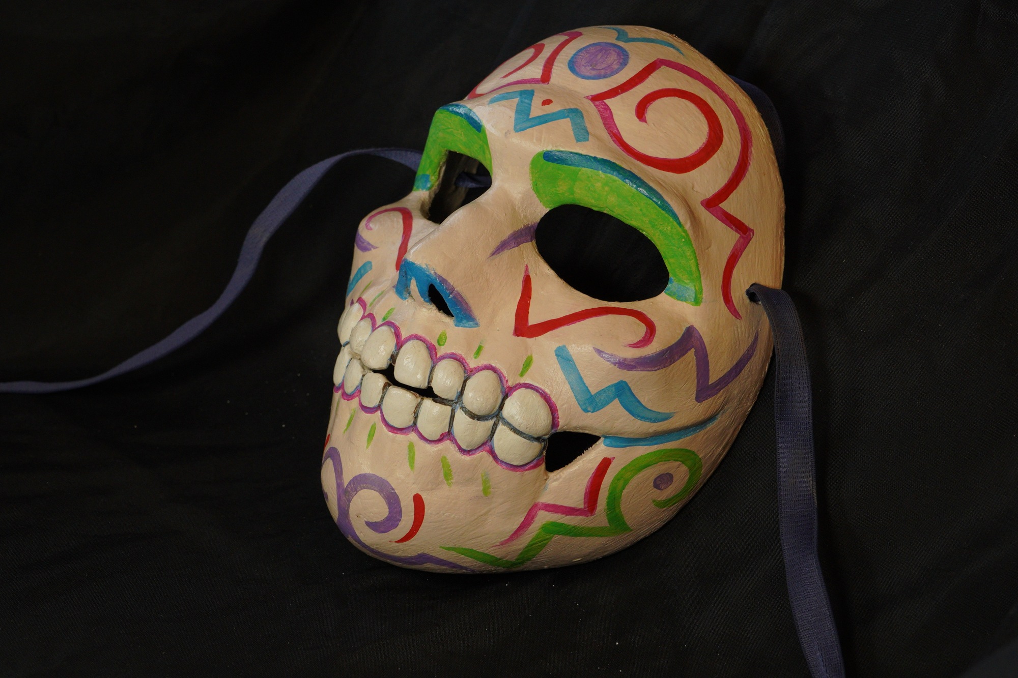Part of the Ollin Yoliztli Calaca Series. Masks created over the duration of 3-4 years. While creating this collection, the artist developed and perfected his own style of painting for the calaca masks.