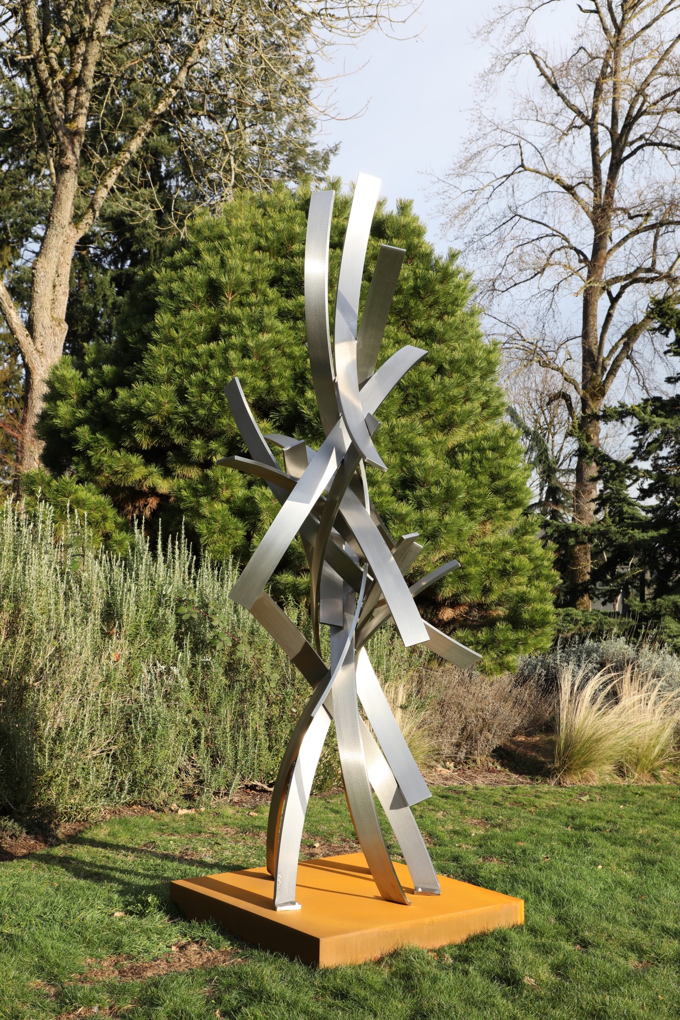 brushed stainless steel with cor-ten steel base
