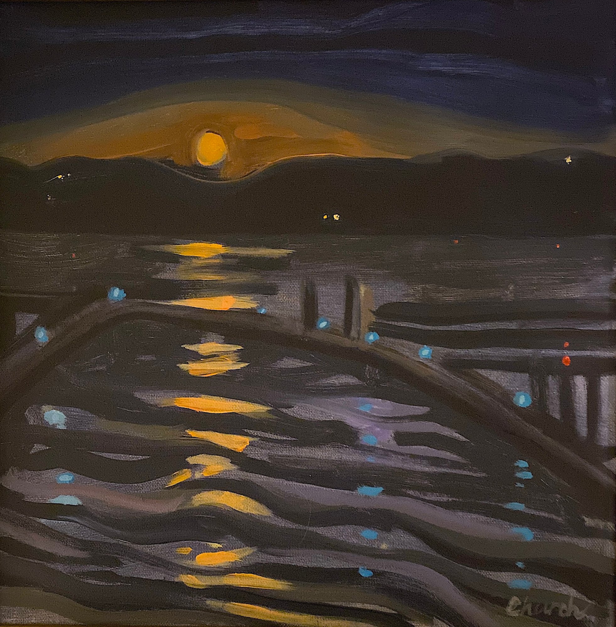 Plein Air painting at Plum Point on Seneca Lake. I was there at just the right moment to capture this supermoon rise.