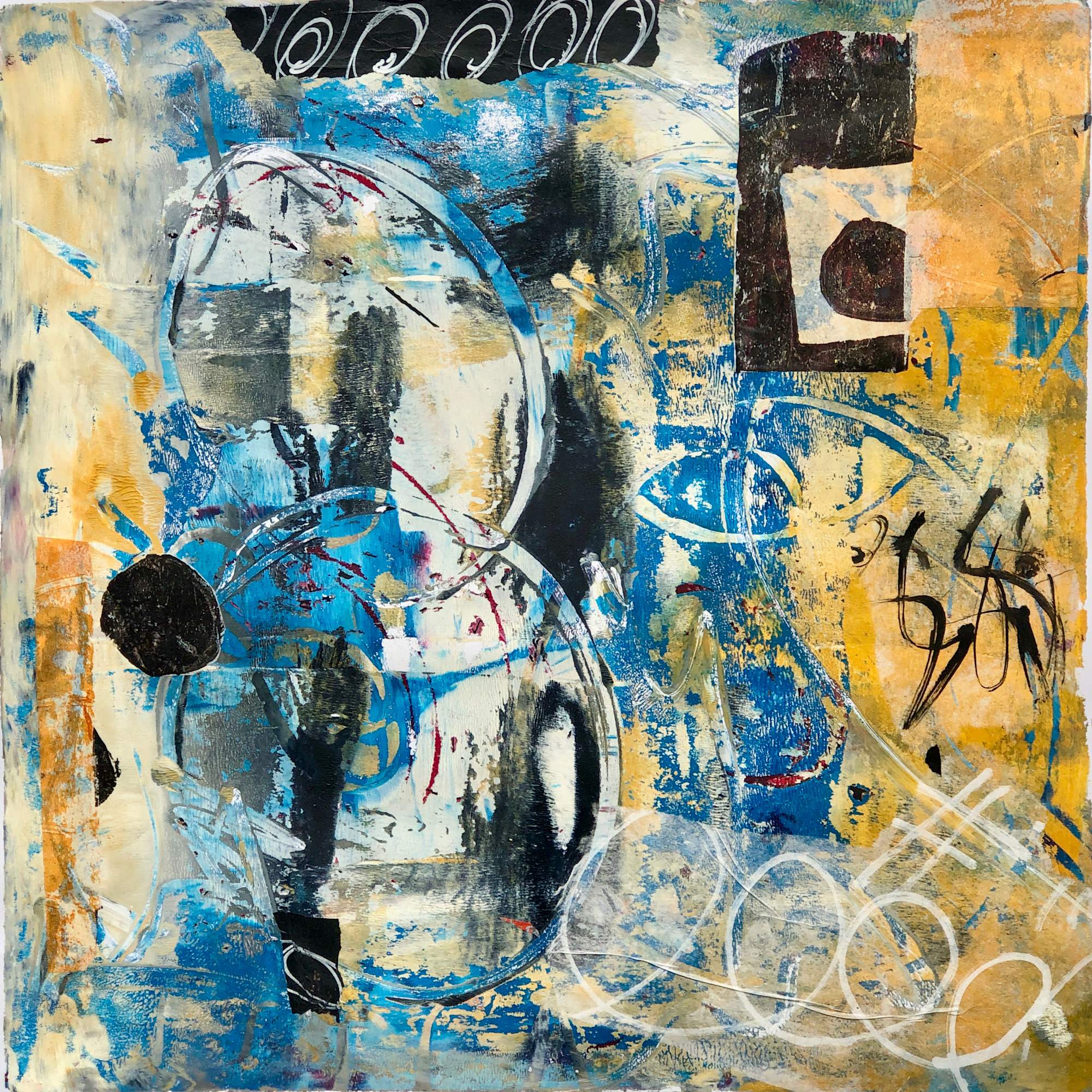 One-of-a-kind-type-of-artwork. Monotype from gelli plate. Collage added.