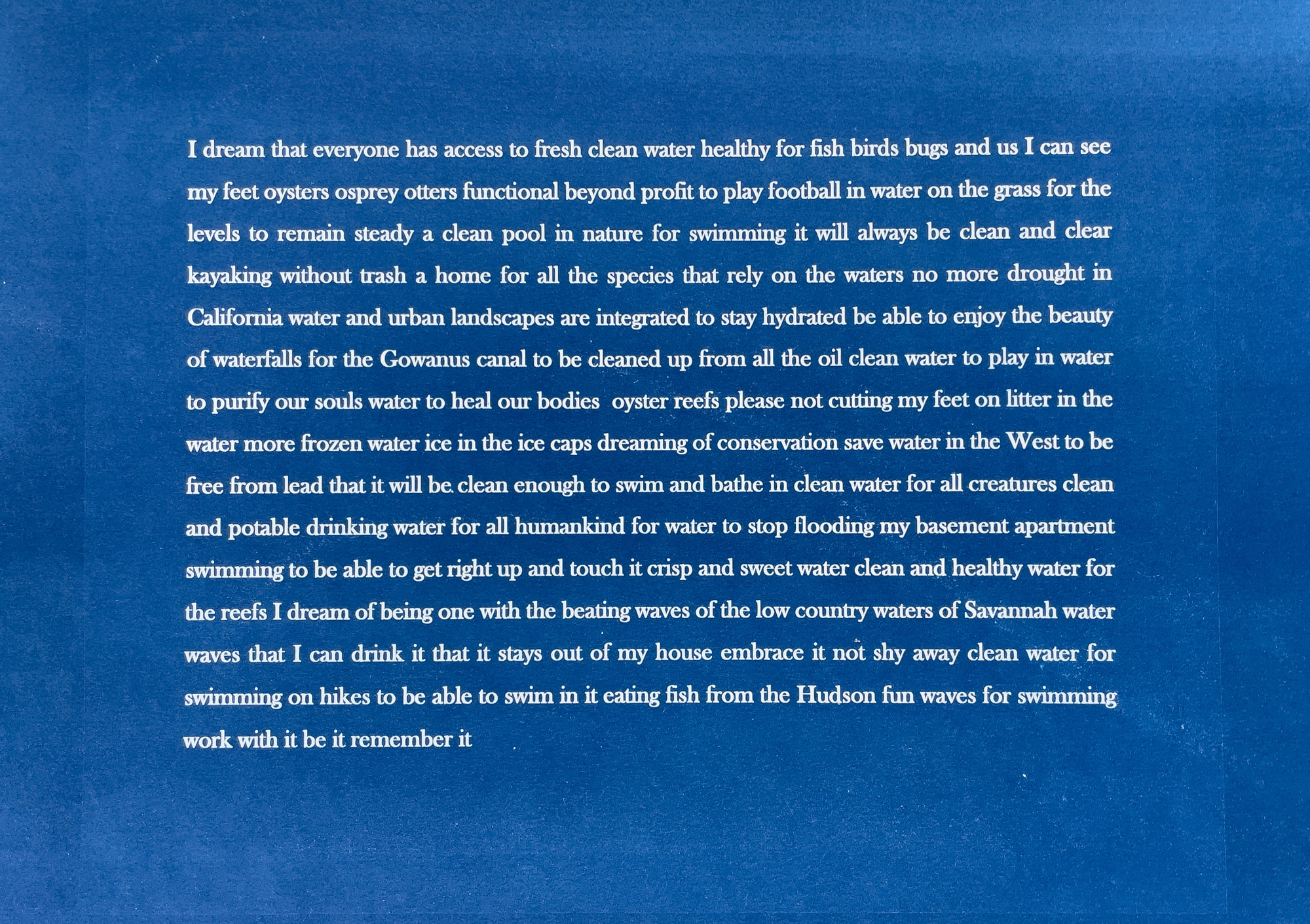 Responses to the prompt, "describe your dreams for water in your community", collected and aggregated 2021 in the Works on Water House on Governors Island, NY.