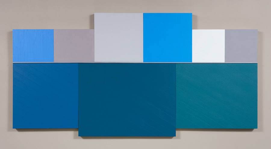 This piece is part of a series inspired by the beaches, colors and my memories of Saint Barth island in the Caribbean. I love the various blue and green colors of the water, the white sandy beaches and the clear blue sky. The work is very minimal and stripped to its essence yet maintains the cool and calming feel of the Caribbean.