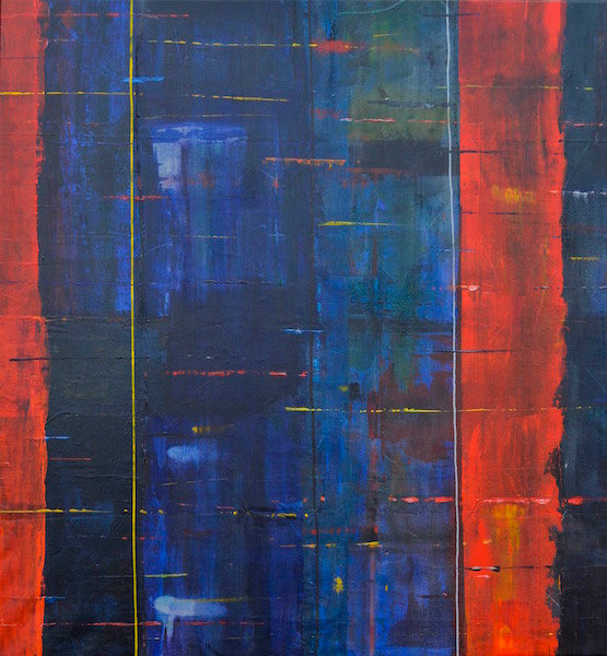 Inspired by cityscapes, this work is a structured exploration of color and architectural form. Trowels and squeegees are used to push and pull the paint in layer upon layer to build up the narrative in this loosely ordered composition. The work emerges with its own identity through the intention and coincidence of the painting process.