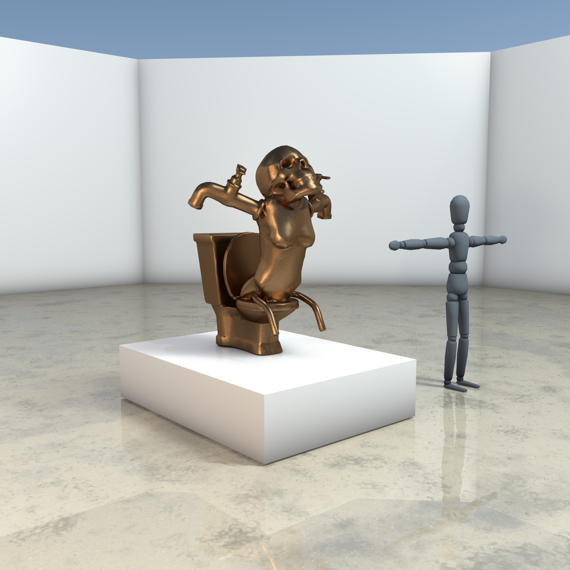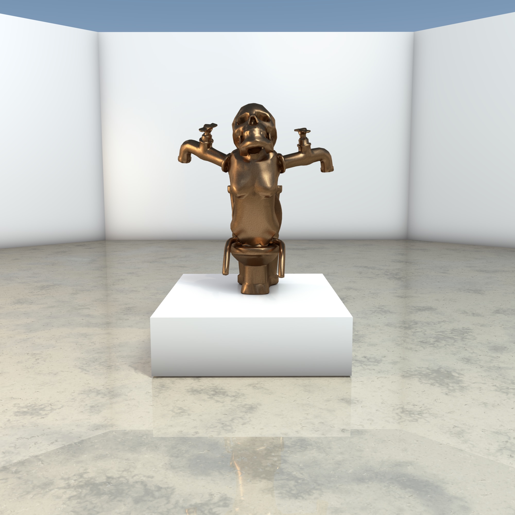 Brendon McNaughton’s The Reaper (2020) is a monumental cast bronze sculpture that confronts the inevitability of death while drawing upon a rich network of art-historical and cultural references. Initially conceived in virtual reality, the work extends the legacy of Duchamp’s readymade into the digital sphere. McNaughton sculpted using pre-fabricated VR “stamps”—toilets, taps, anatomical fragments—before transposing the virtual into bronze, a material associated with permanence, memory, and commemoration. This translation marks a crucial tension: the immediacy of digital improvisation rendered into the weight and permanence of tradition.