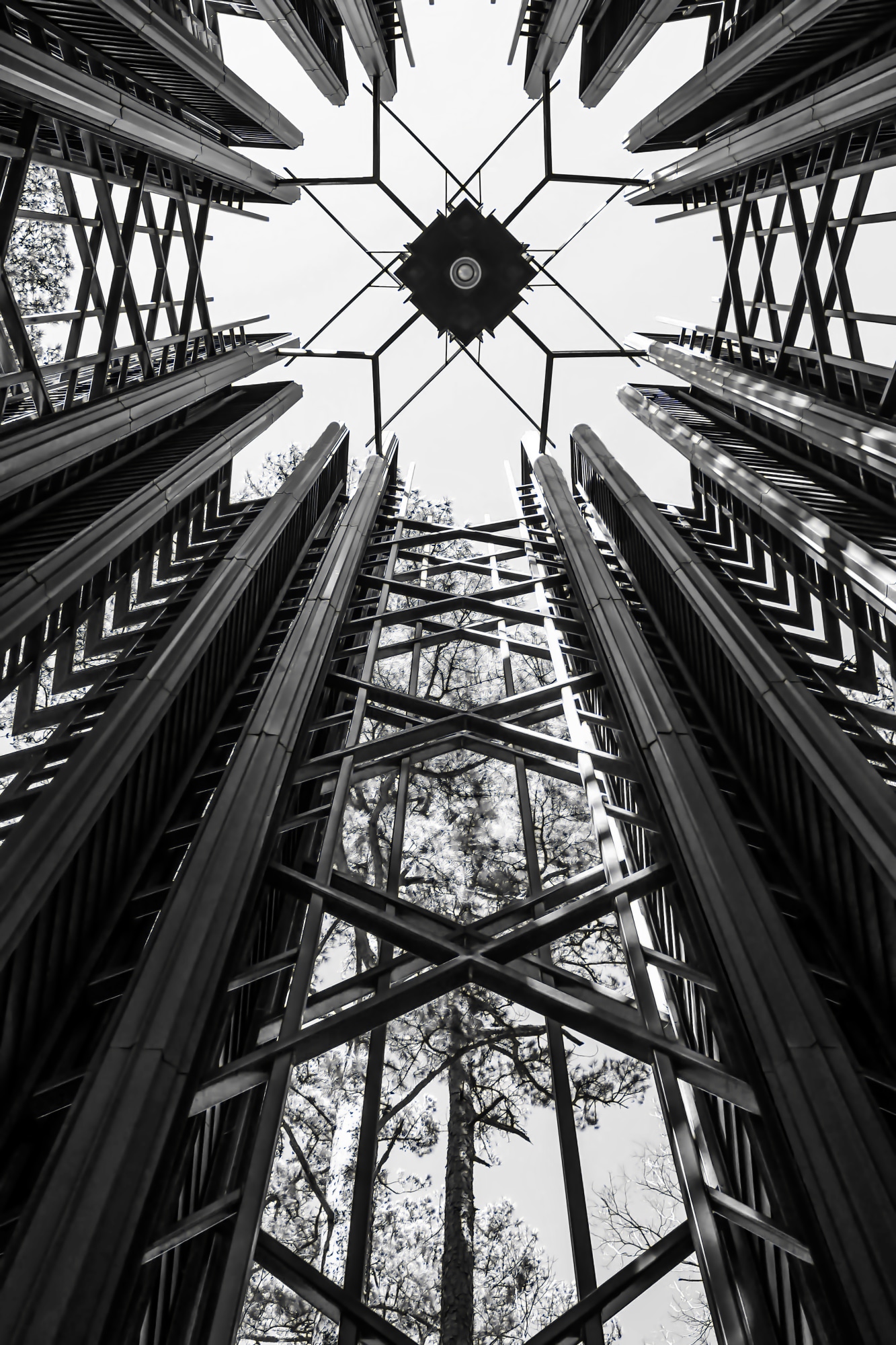 Crossways is a prayerful perspectivism through a Celtic-like architecture that is the Carillon bell tower next to the Anthony Chapel glass chapel in Garvan Gardens in Arkansas.