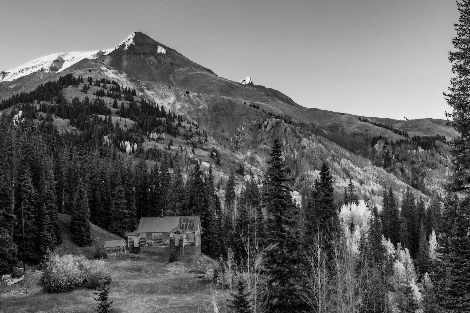 Colorado. Red Mountain Mining District. 1890-1915. Boom of gold, silver, and copper. Across the way is the Yankee Girl Silver Mine - the most valuable silver mine in US History up to that time. Scattered about our homes and towns sometimes with their own mining operation which to the bottom right among the trees you might barely see. When they left they ghosted houses like this and perhaps left behind loved ones which may be true of the spot to the bottom left. But in all that were they mindful of the magnificent mountain shadowing them, every dawn shedding a golden hour light on it?