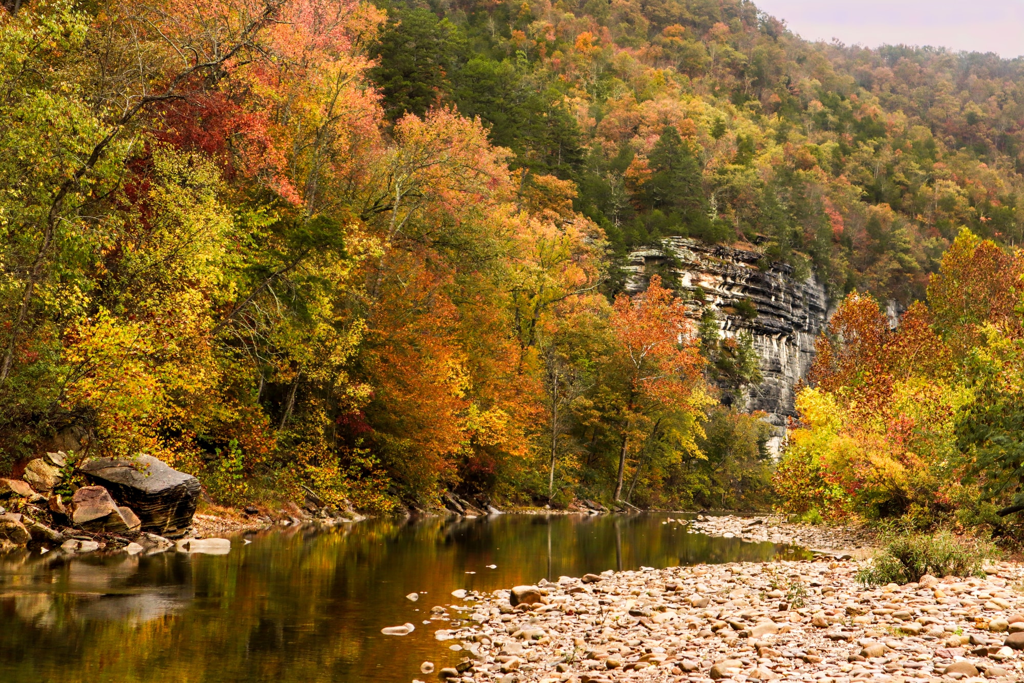 Steel Creek flows from the National treasure the Buffalo River. The stillness of this reflection in this spot was at odds to what I was experiencing behind the camera. I did not remember feeling bruising river rock beneath my feet and soon after I found I had to literally dig myself up water soaked sand with me thinking this must be similar to quicksand. In the process I soaked my second sock and shoe of the day.