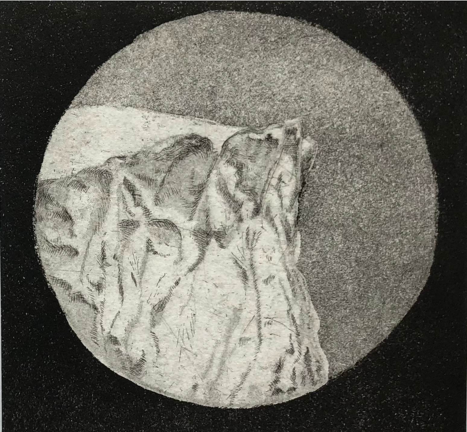 These 6x6" etchings are a personal response to spending most of my time in Greenland glued to binoculars. These images show close ups of icebergs, recreating my experience of sailing along with binoculars in hand.