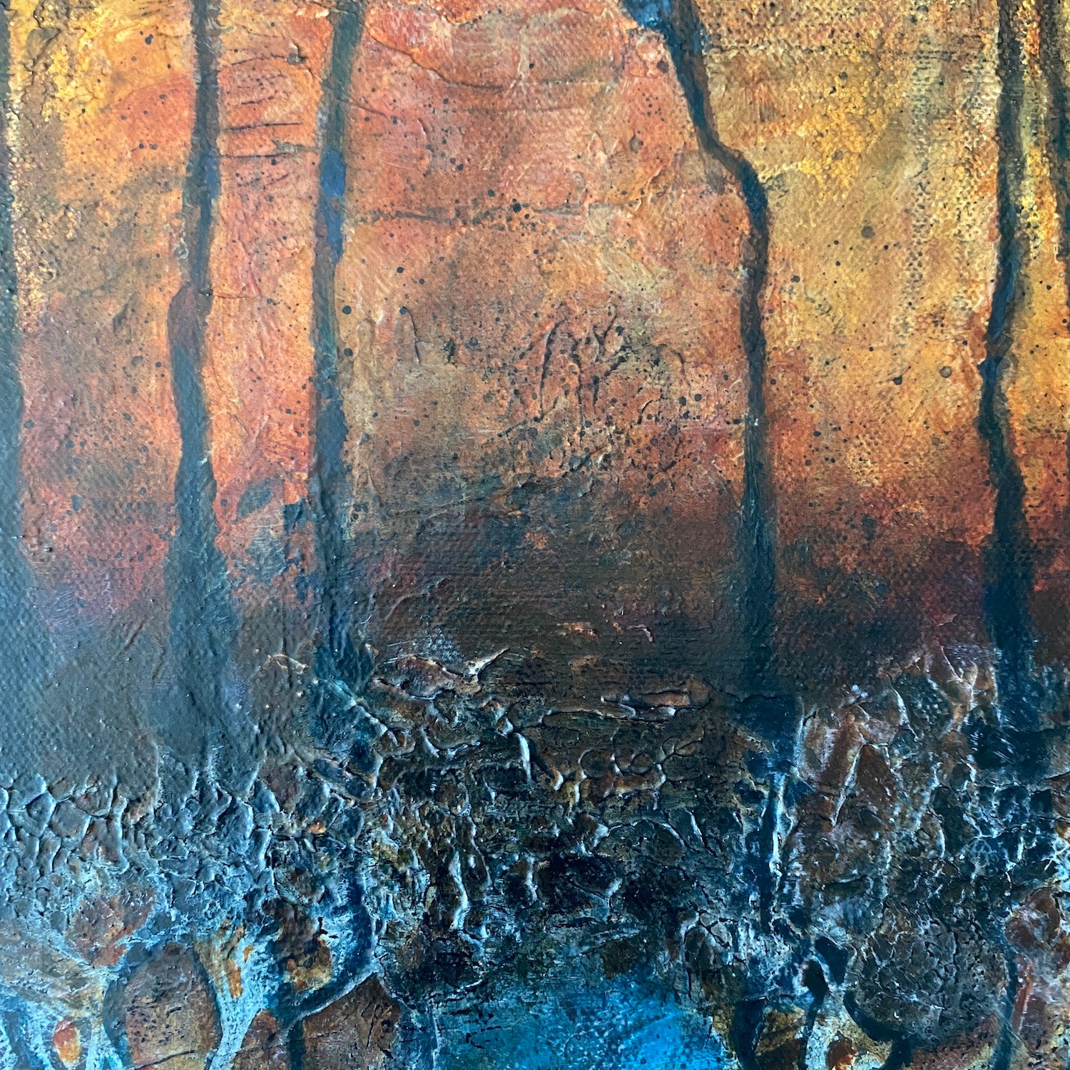 This original acrylic painting on gallery wrapped canvas is wired, ready to hang. The sides are finished in a darker brown / black to harmonize with the painting.