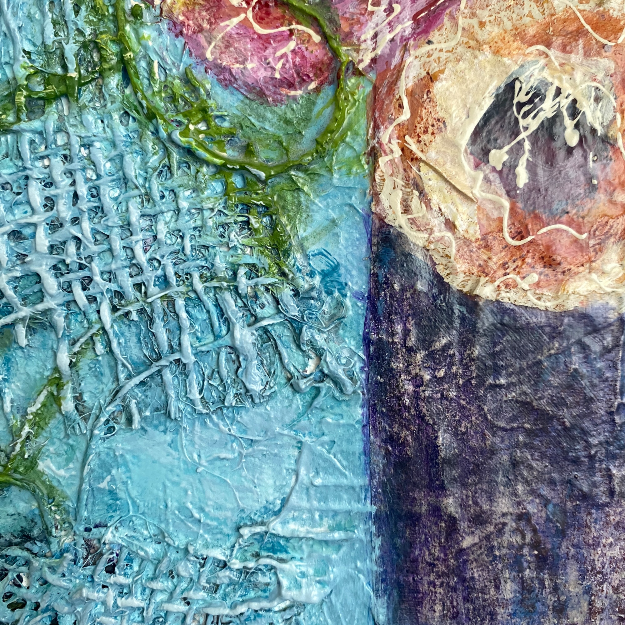 A textured, layered, expressive floral piece that I just that I just had to get out of my system was donated to a fundraiser. The person who lost the bid requested another - hence the title ...