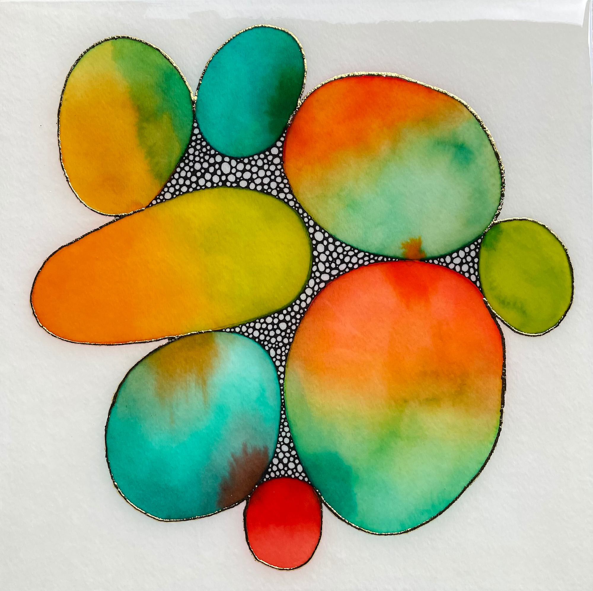 ink, metal leaf, resin