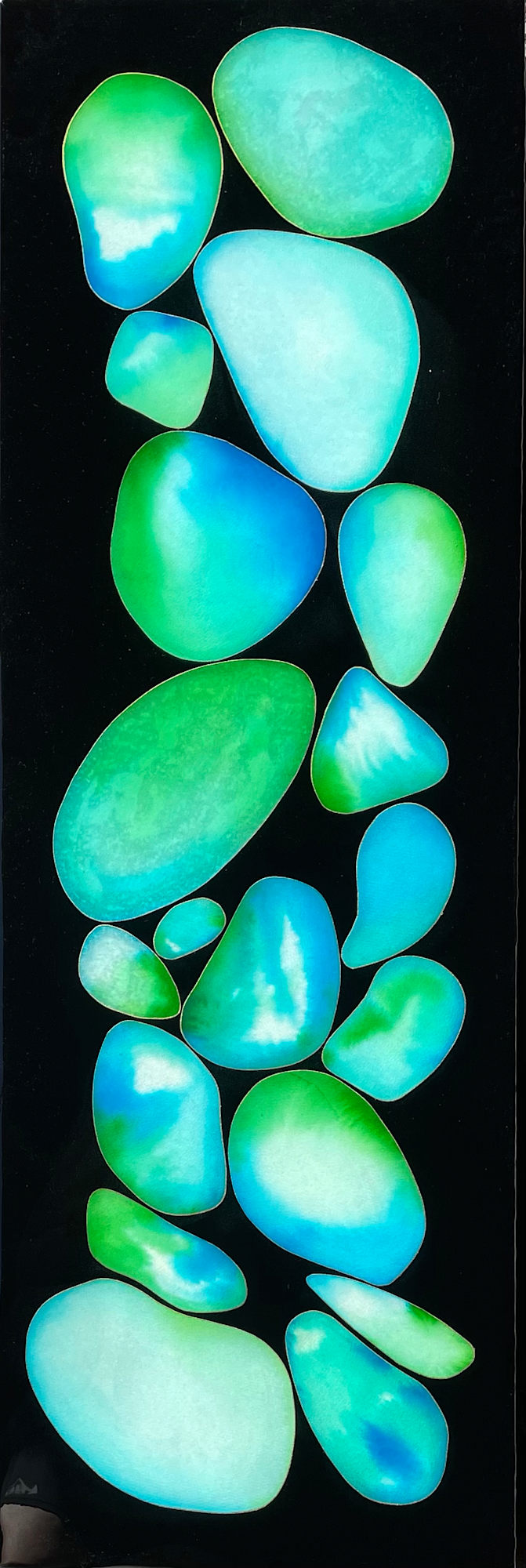 Black acrylic, archival watercolor paper, ink, Sakura pigment, resin on cradled panel