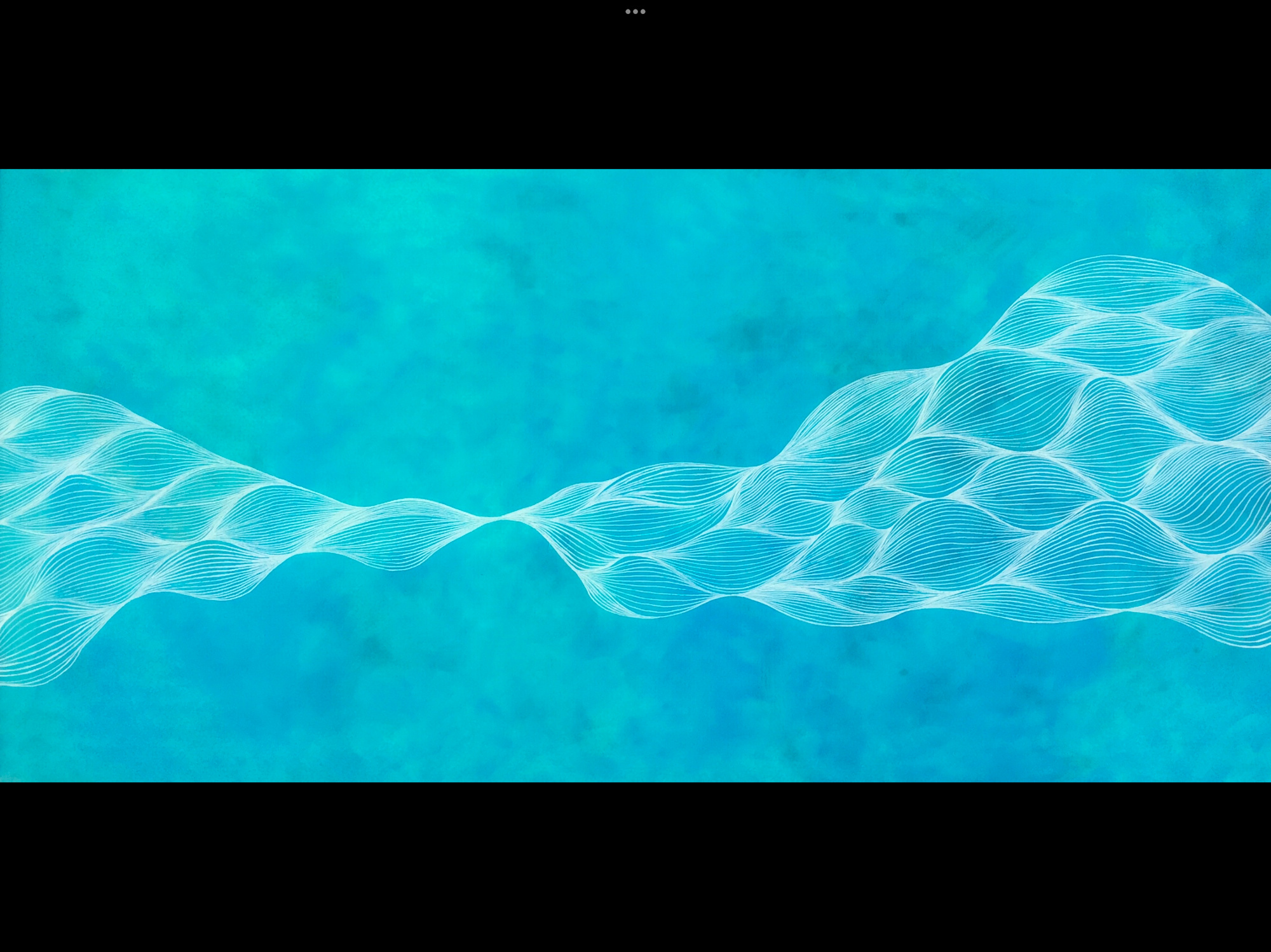Blue/green acrylic background with white pen and ink flowing lines. I Want to be Part of the Solution was created in 2020 while the world was coping with COVID and soon after George Floyd’s murder.