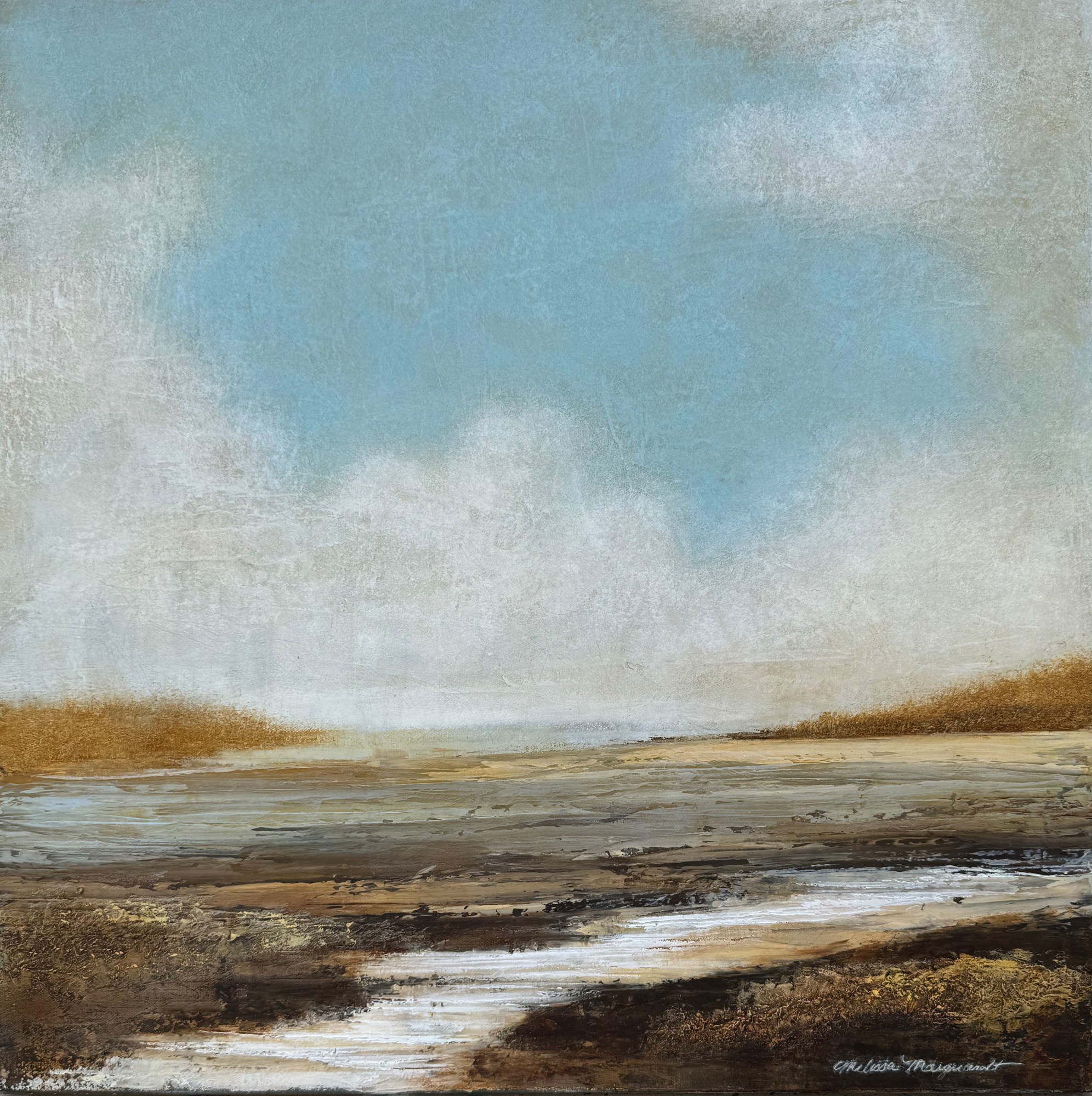 Coastal artist working thin fluid paint layers or buttery cold wax. Building layers to create complex visual texture resulting in works peaceful in nature.