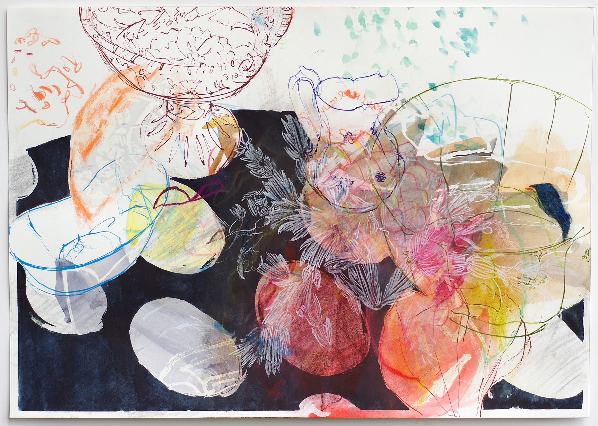 ink, watercolor and pastel on paper