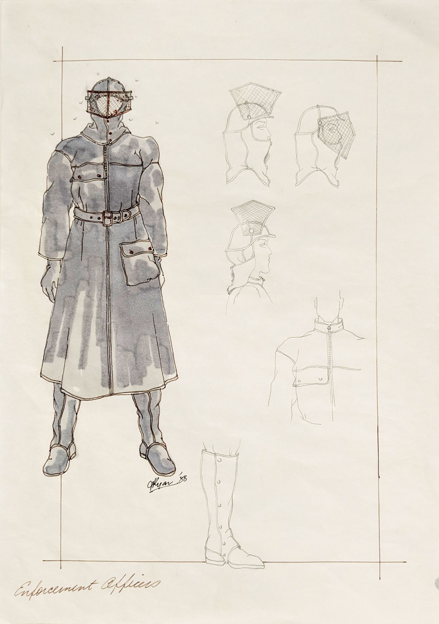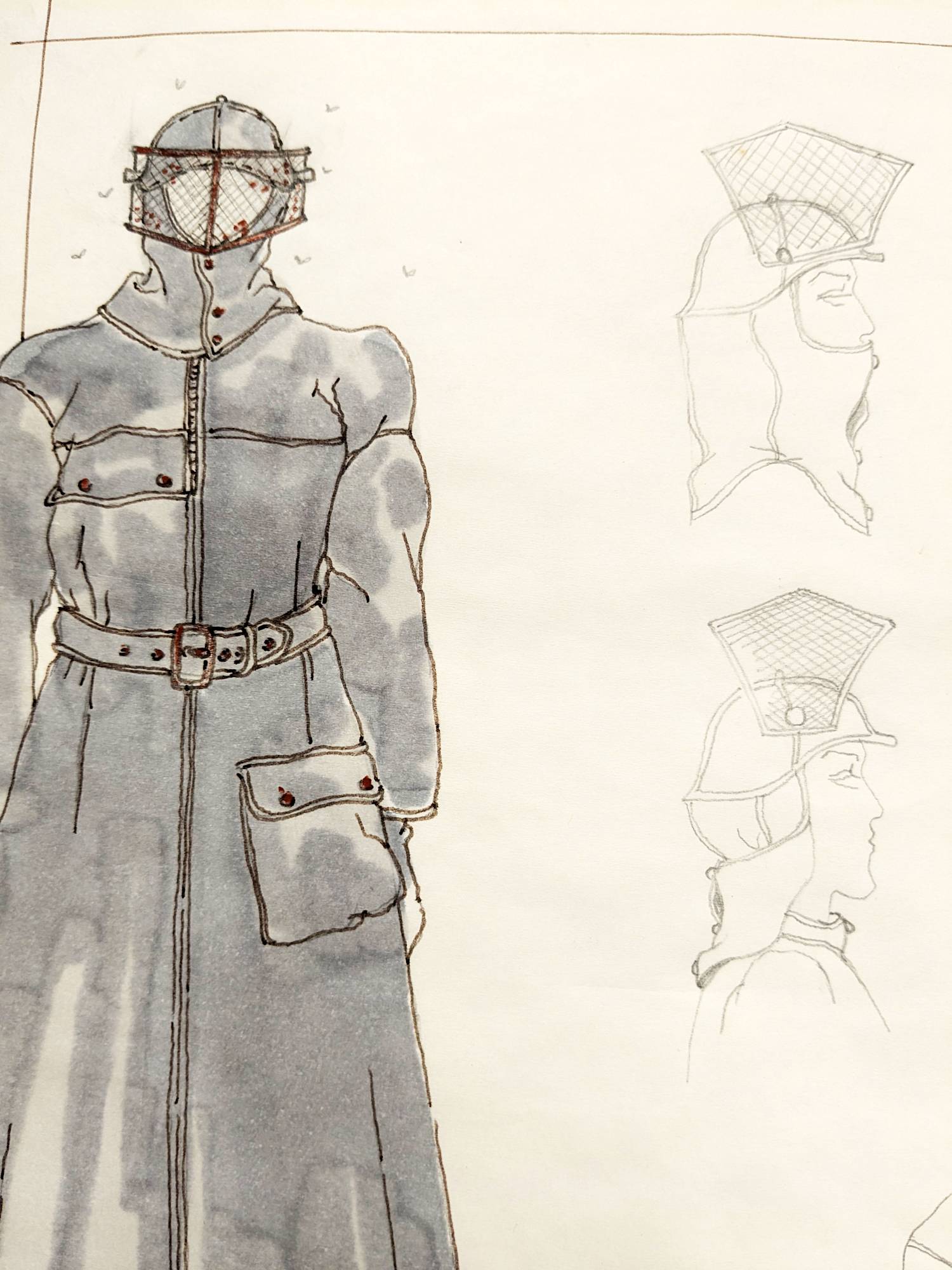 These costume design original works on paper have been gifted to the Mendocino Art Center by David Webb Peoples, the writer and director of The Salute of the Jugger. These are one of kind pen and ink illustrations.