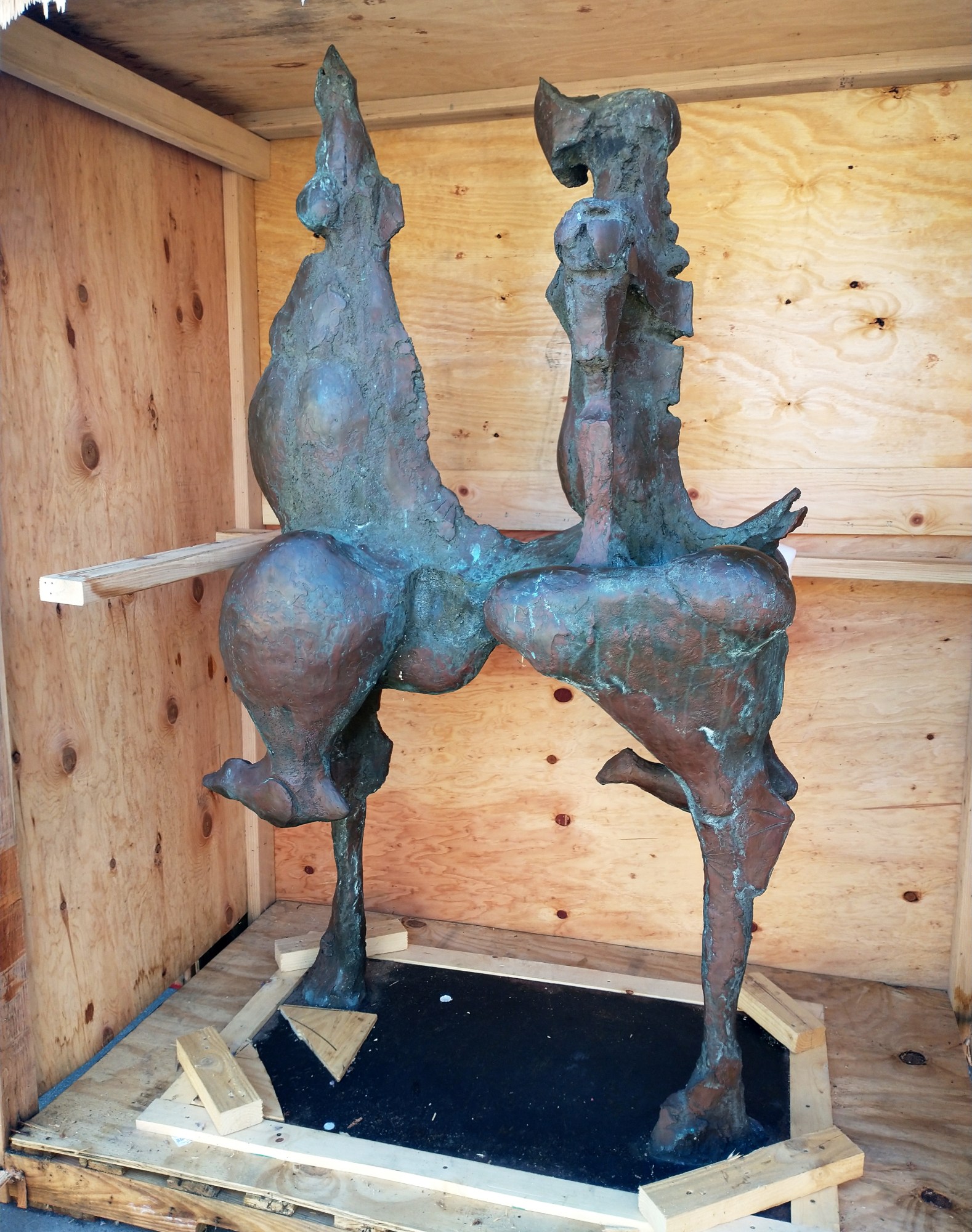 This large bronze came to the Mendocino Art Center through a generous donation by the Maxine Kim Frankel Estate. This bronze can be found on page 128 of "THE HUMAN BEAST, The Art of Jan and Maxine Kim Stussy", by Michael Duncan. This sculpture stayed in the private collection of the artist until the time of her death.
