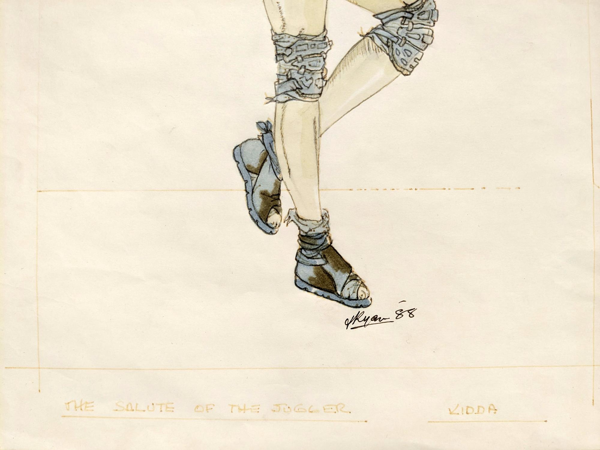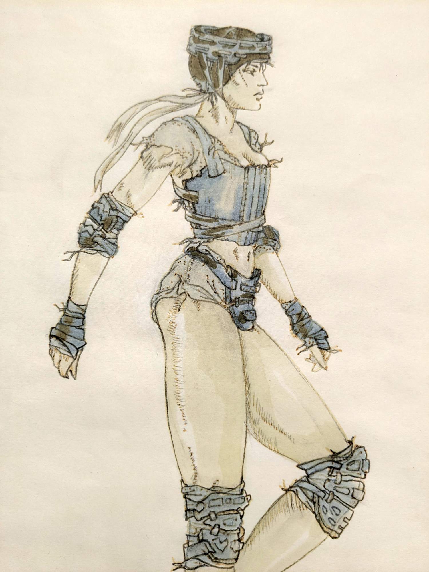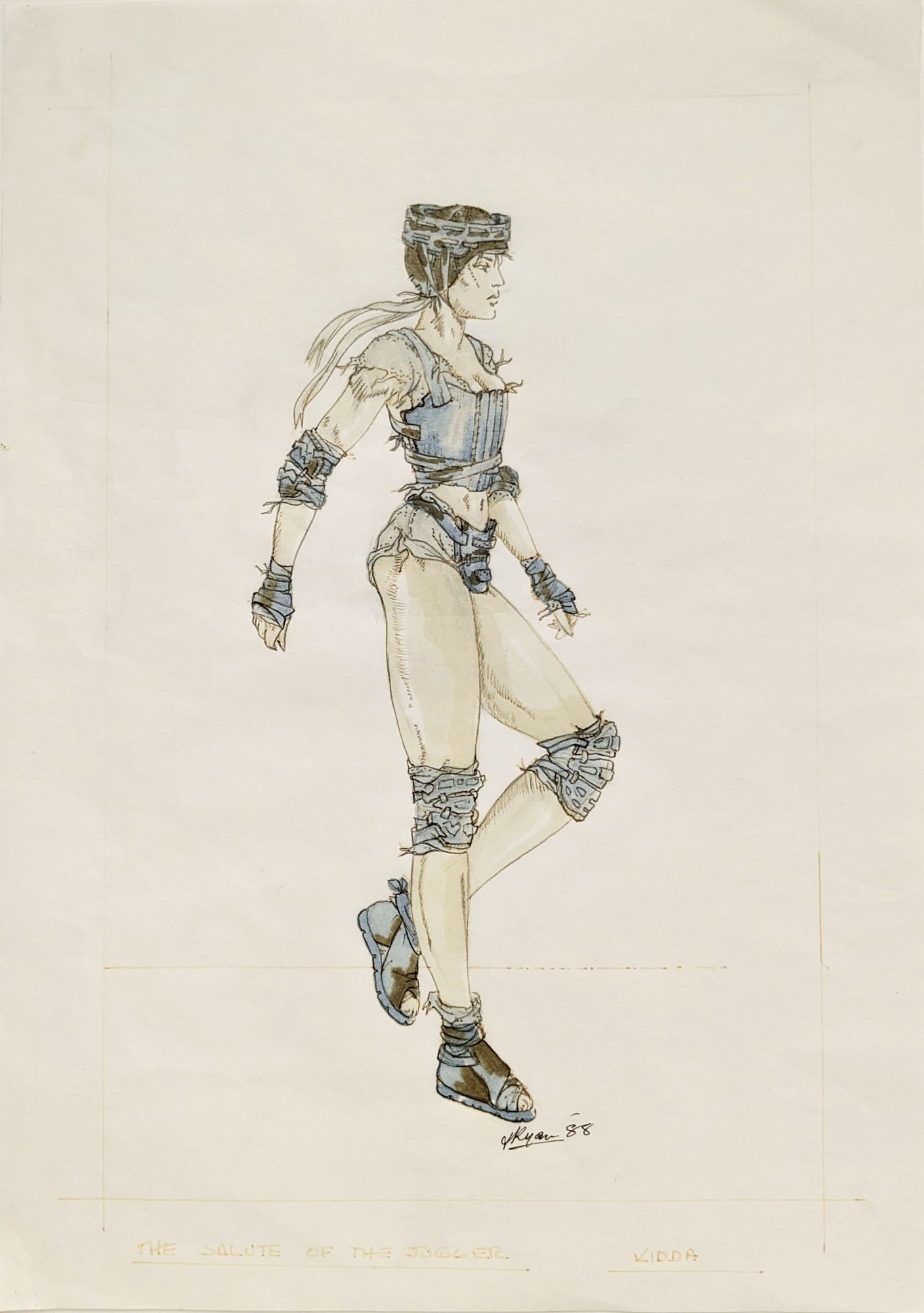 These costume design original works on paper have been gifted to the Mendocino Art Center by David Webb Peoples, the writer and director of The Salute of the Jugger. These are one of kind pen and ink illustrations.