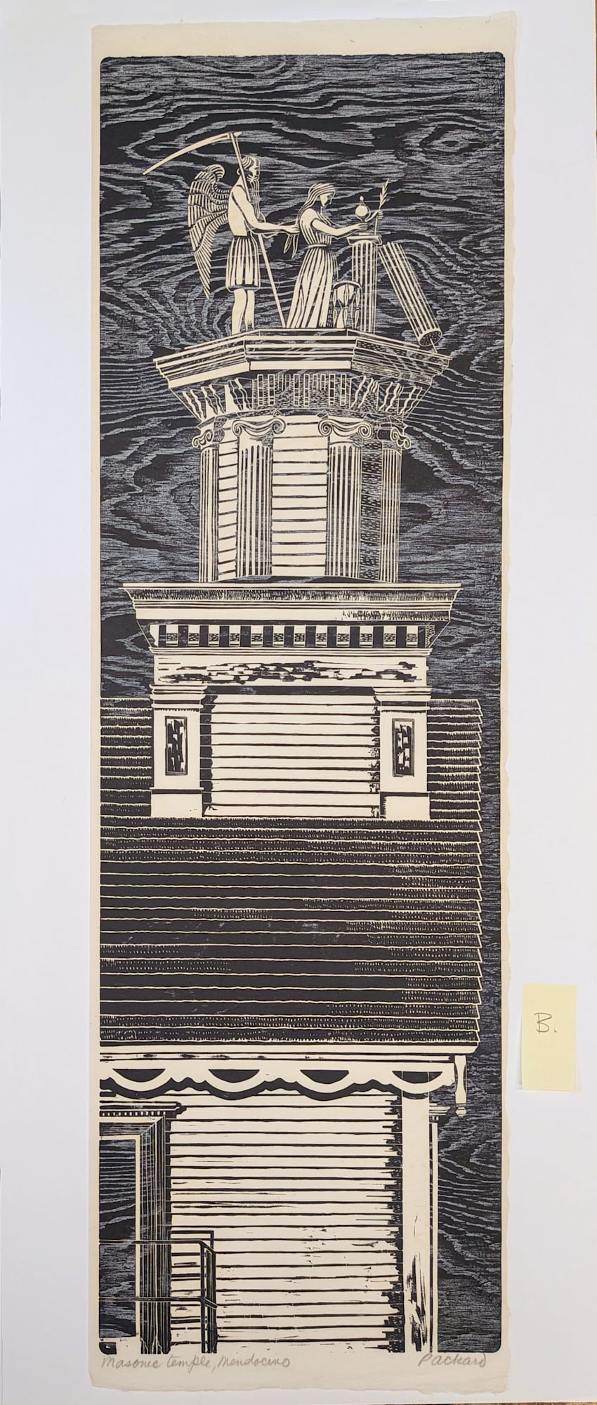 - Signature: pencil signed "Packard" in lower right, titled "Masonic Temple, Mendocino", lower left