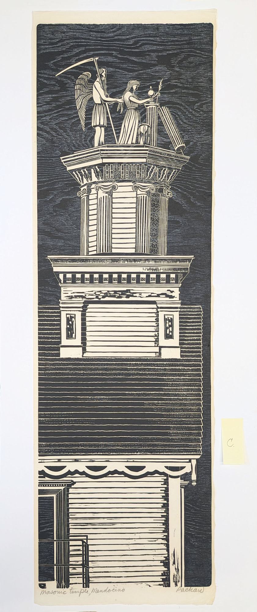 - Signature: pencil signed "Packard" in lower right, titled "Masonic Temple, Mendocino", lower left