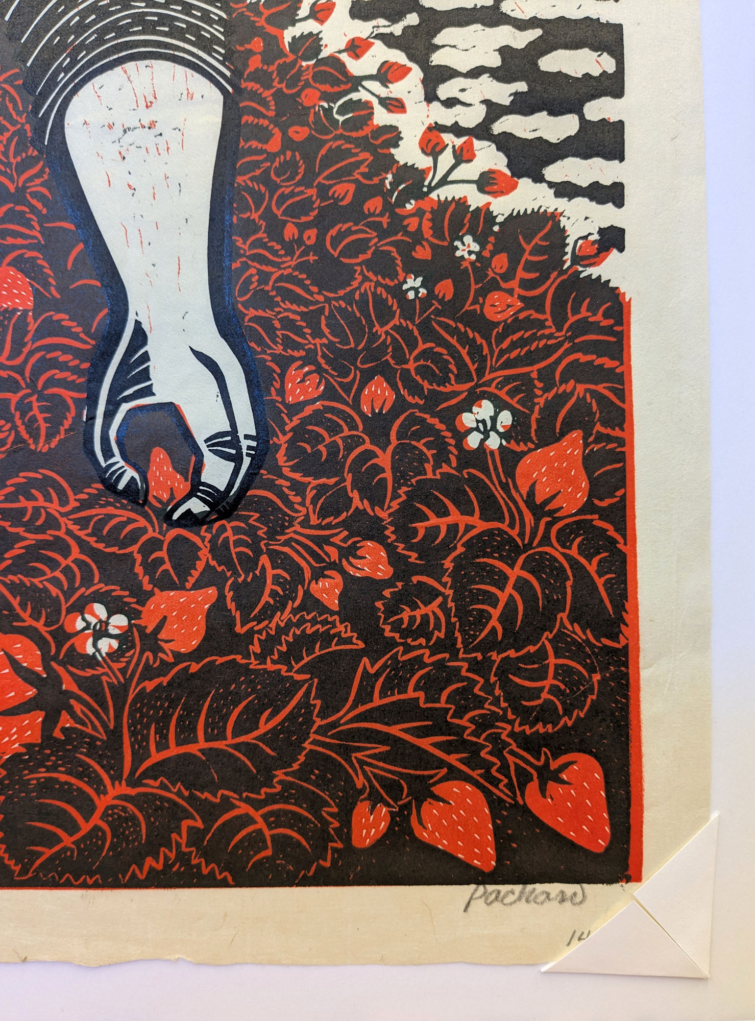 Original print by Emmy Lou Packard printed on mulberry paper. This is a artist signed print. This print is un-matted and un-framed. This print came into our possession through a generous donation by the Packard family estate in 2018.